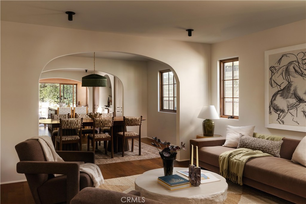 Introducing Hacienda 55, a thoughtfully designed Spanish compound in the heart of Highland Park, masterfully curated by the team at Bungalowe. Blending timeless character with modern livability, this 3-bedroom, 3-bath main residence plus a full 1- bedroom, 1-bath ADU is truly a work of art. From the moment you enter, you’re greeted by a warm and inviting sitting room that flows seamlessly into a formal dining space and into the heart of the home, a stunning chef’s kitchen anchored by a large island, handcrafted tile backsplash, skylight above, and a beautifully integrated wine area. Beyond the kitchen, a spacious family room with rich plaster walls and curated lighting creates the perfect setting for both everyday living and entertaining, with direct access to a private deck that extends the living space outdoors. The layout is both functional and refined: featuring well-appointed secondary bedrooms, including one with its own en-suite bath, and a beautifully appointed primary suite. The primary bedroom offers a peaceful retreat, complemented by a spa-like ensuite featuring handcrafted tile work, a double vanity, walk-in shower, and an oversized walk-in closet. Step outside to a private, multi-level backyard retreat. The lower level offers a lush grassy area, while the upper level is designed for entertaining, complete with garden elements, tranquil fountains, and space to gather under the Socal sky. The detached ADU mirrors the design integrity of the main home, featuring vaulted ceilings, a spacious bedroom and bathroom, and a beautifully finished kitchen with handcrafted tile, making it ideal for guests or a private workspace. Ideally located just moments from York Boulevard, Hacienda 55 offers easy access to some of Highland Park’s best dining, coffee, and local favorites. Every inch of Hacienda 55 has been intentionally designed, blending organic textures, architectural arches, and custom finishes throughout. A rare offering that feels more like a curated living experience than a home, this is Highland Park living at its finest.