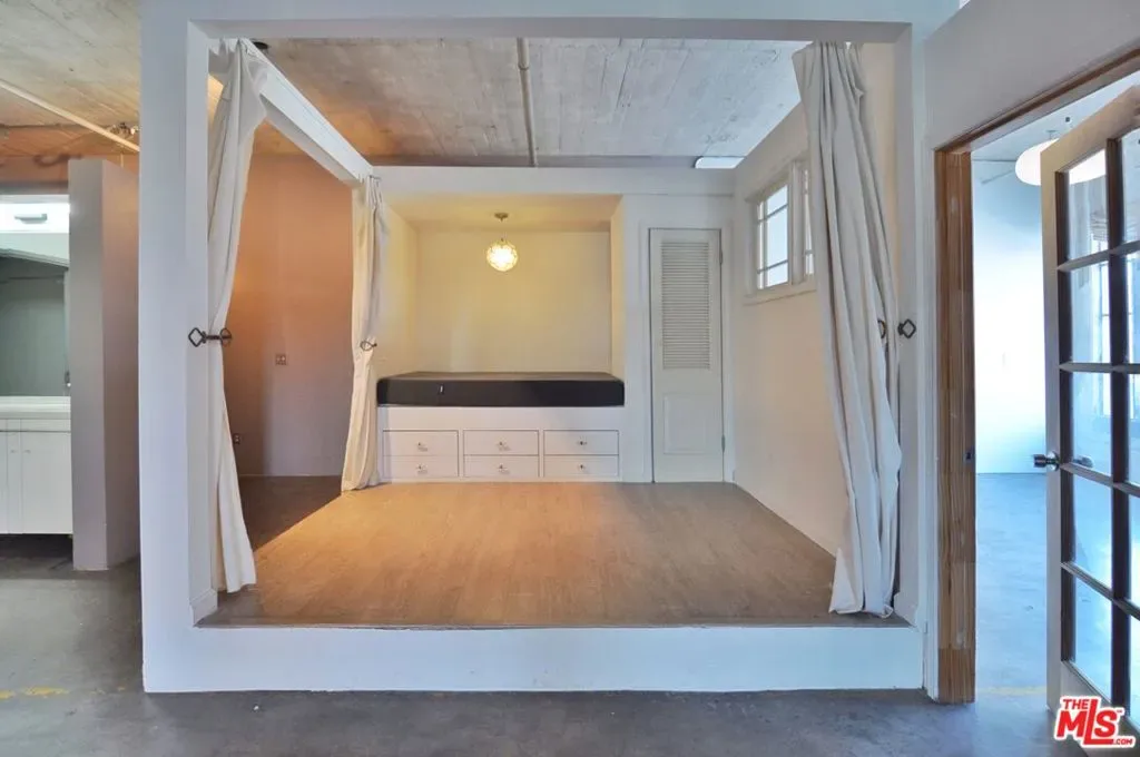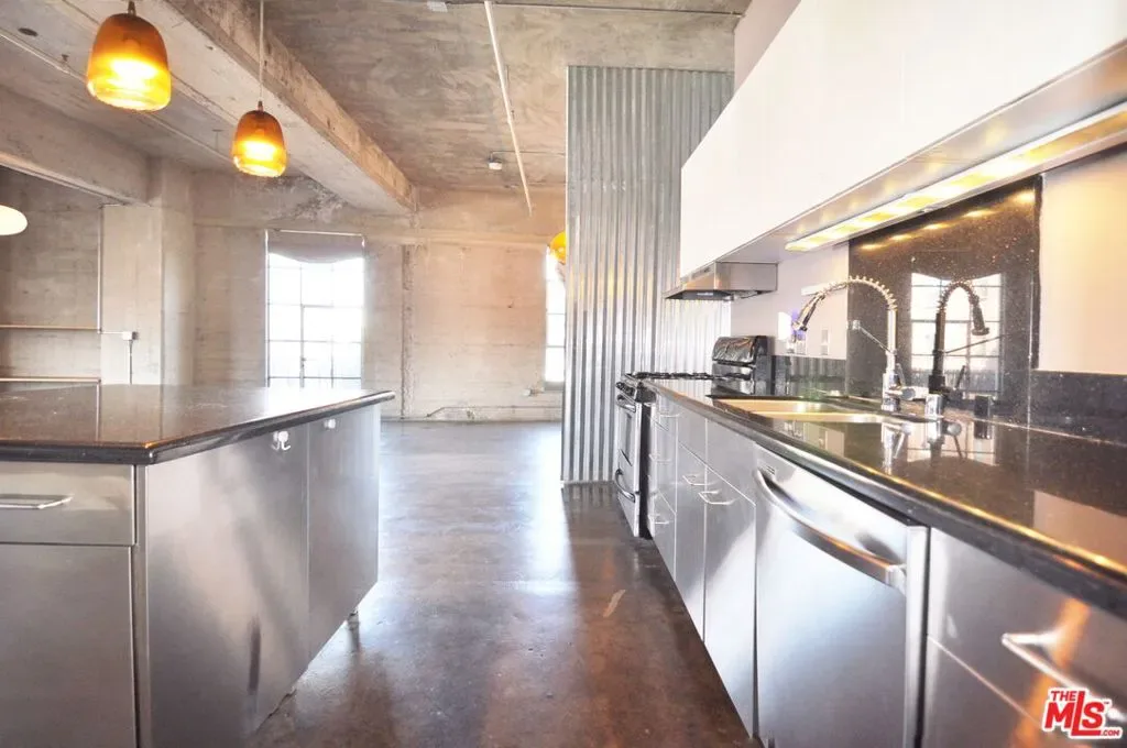 Toy Factory live/work industrial loft in the heart of the highly desirable Arts District. This unique 3rd floor CORNER loft features 1418sf of space, with 11-foot tall ceilings, concrete floors, and massive vintage factory windows with a northeast balcony off the open plan living area. This true industrial loft features a separated main bedroom with closet storage with built-ins, platformed reading/workspace nook, and spacious bathroom with washer and dryer. Ideal as a flexible creative space. The open plan kitchen features a stainless steel island with additional storage, and flows into the living/dining area. The living area features a glass casement door that leads out onto a balcony, extra hidden storage behind barn doors, and a great flexible layout. Central heat and AC throughout. Rent INCLUDES 2 TANDEM COVERED PARKING SPACES w/ EV charger, water and trash. The beloved Toy Factory building features a stunning rooftop pool deck and cabanas, 360 degree views of DTLA, garden and lounge deck with BBQs, gym, 24/7 front desk reception, and in-building parking. You’re within blocks of the best of the Arts District, including Soho House, award-winning Camelia, Bestia, Verve, The Girl & Goat, Bavel, Urth Cafe, Manuela, Hauser & Wirth, Geffen Contemporary, A&D Museum, Hanks, GROW market, Hennessy & Ingalls, Salt & Straw, Dover Street Market, Sci-Arc, Bread Lounge, as well as nearby Little Tokyo and Disney Concert Hall, The Broad, Grand Central Market and more.