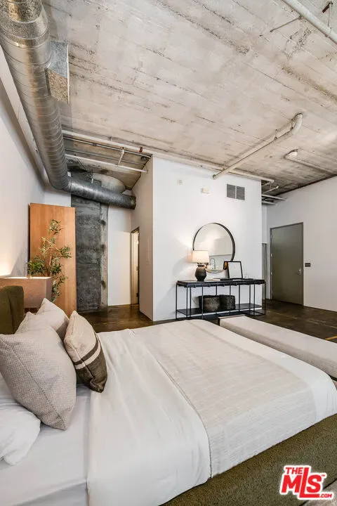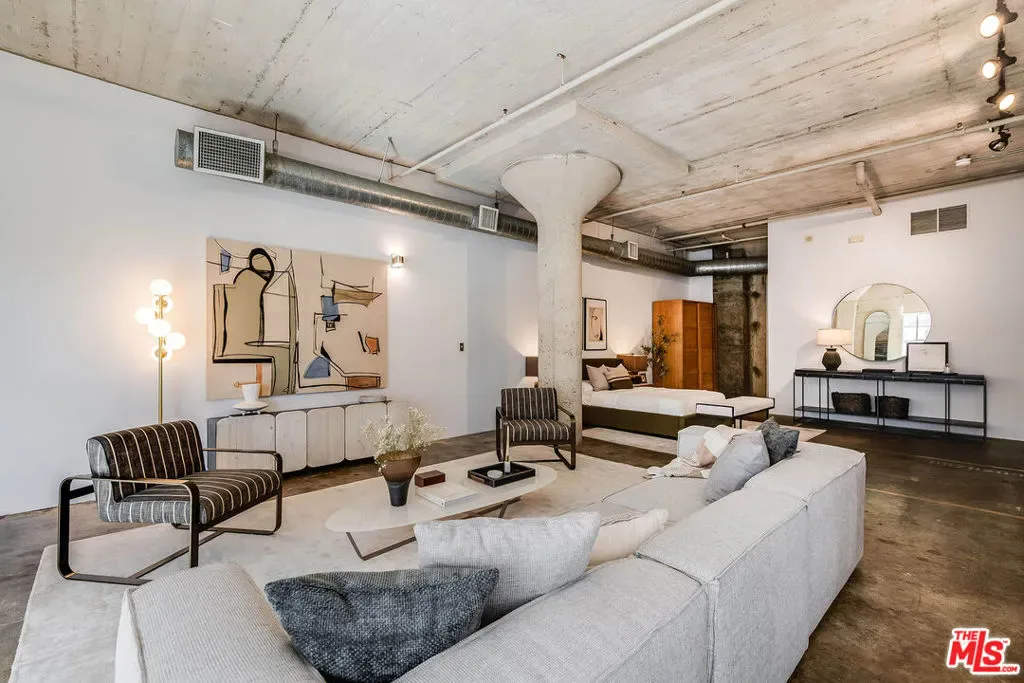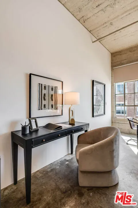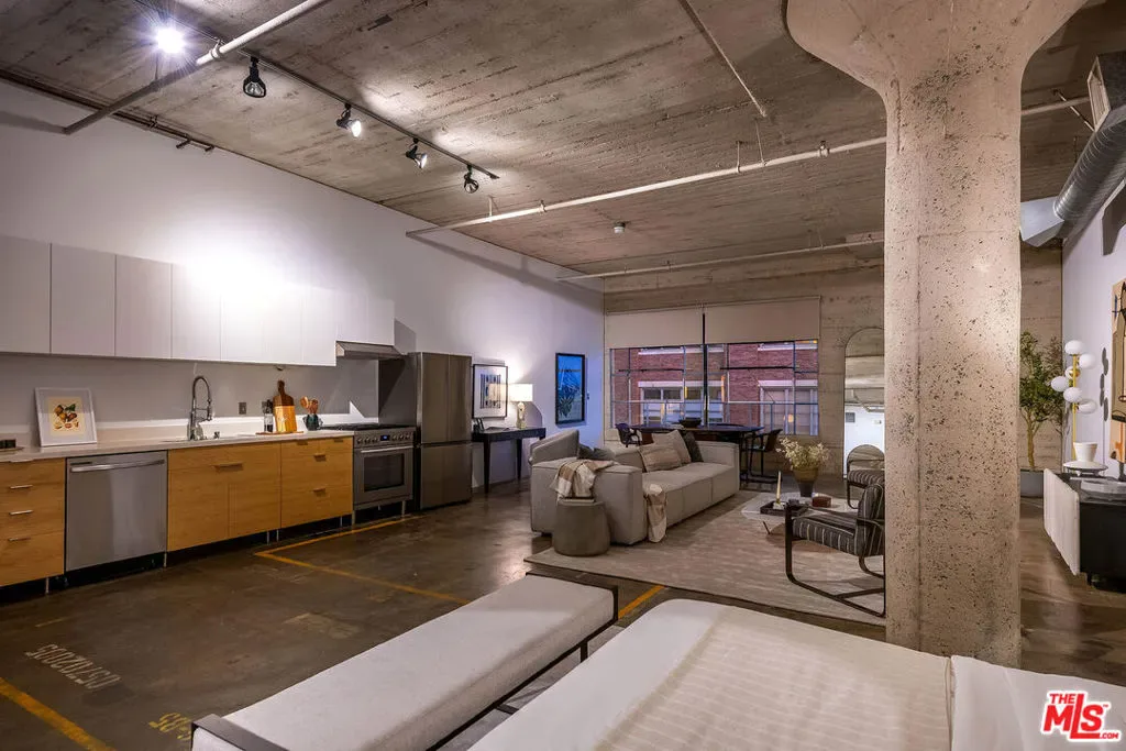 Toy Factory Lofts, a highly coveted Live/work loft community in the vibrant Arts District of DTLA. This remarkable Penthouse loft, a rare find, boasts an expansive open floor plan with soaring 12-foot ceilings. Original 1924 concrete floors and columns combine historic features with modern living. The loft is illuminated by oversized industrial-style windows, recently upgraded with new glass and motorized shades, facing south to invite abundant of natural light throughout the space. Recent upgrades include kitchen appliances: a Bosch gas stove, Samsung refrigerator and dishwasher, and a large LG front loading stackable washer-dryer. Resort like building amenities enhance the living experience, offering a secure lobby with a 24-hour doorman, a rooftop pool surrounded by a sun deck and a cozy fire pit that provides breathtaking views of the DTLA skyline, 6th Street Bridge, and snow capped mountains. Enjoy a communal deck with lush green spaces, barbecue areas, and a two-story gym. Residents benefit from an assigned, indoor, secured parking space in the attached private garage. Toy Factory Lofts is located just steps away from Hank’s Organic Market, restaurants like Camila, Bestia, Bavel, The Soho House, DTLA Row Factory, The Bike Shed Moto Co, and galleries including Hauser & Wirth, ICA LA and many more. It is also located 2 blocks from Warner Music and Spotify offices with easy access to the 5, 10 & 101 FWYS. This penthouse loft offers the ultimate freedom to live, create, and work from home in a true industrial-chic settinga rare opportunity in one of DTLA’s most iconic buildings.
