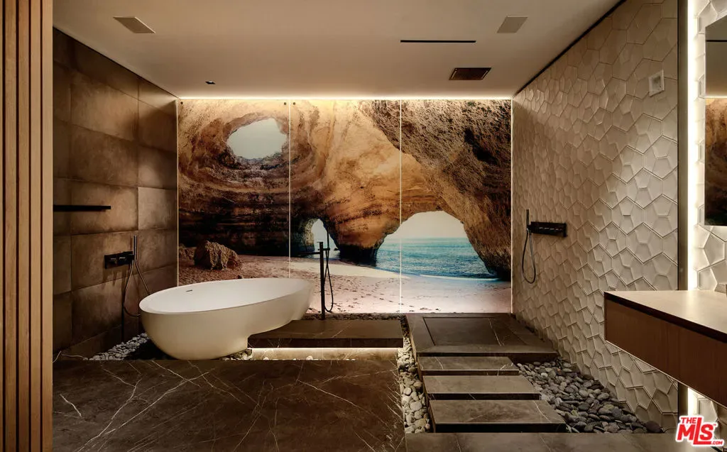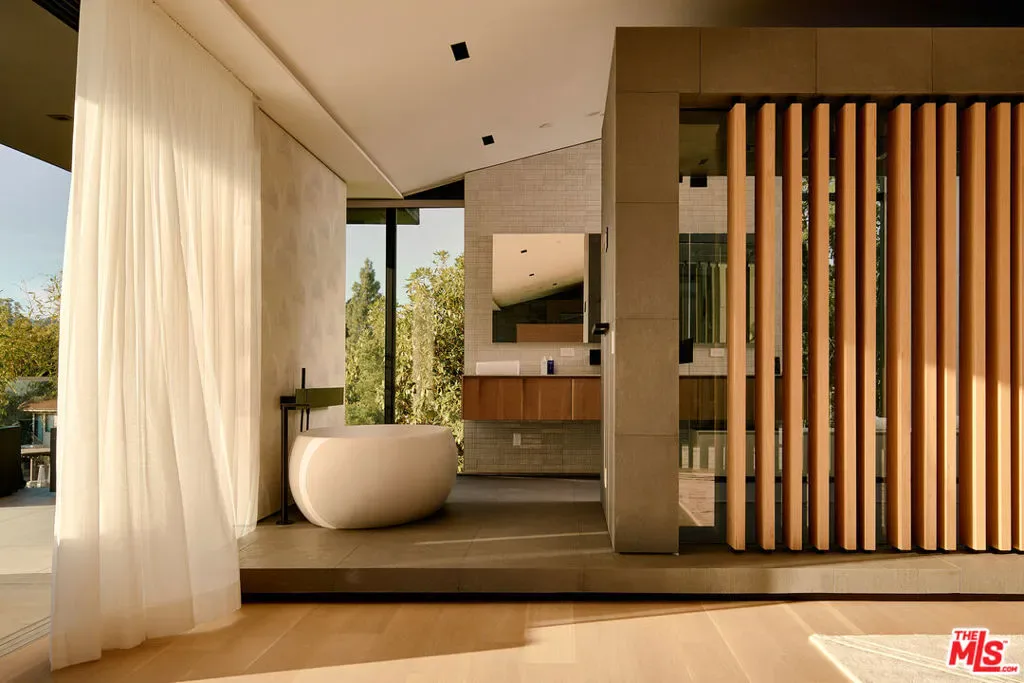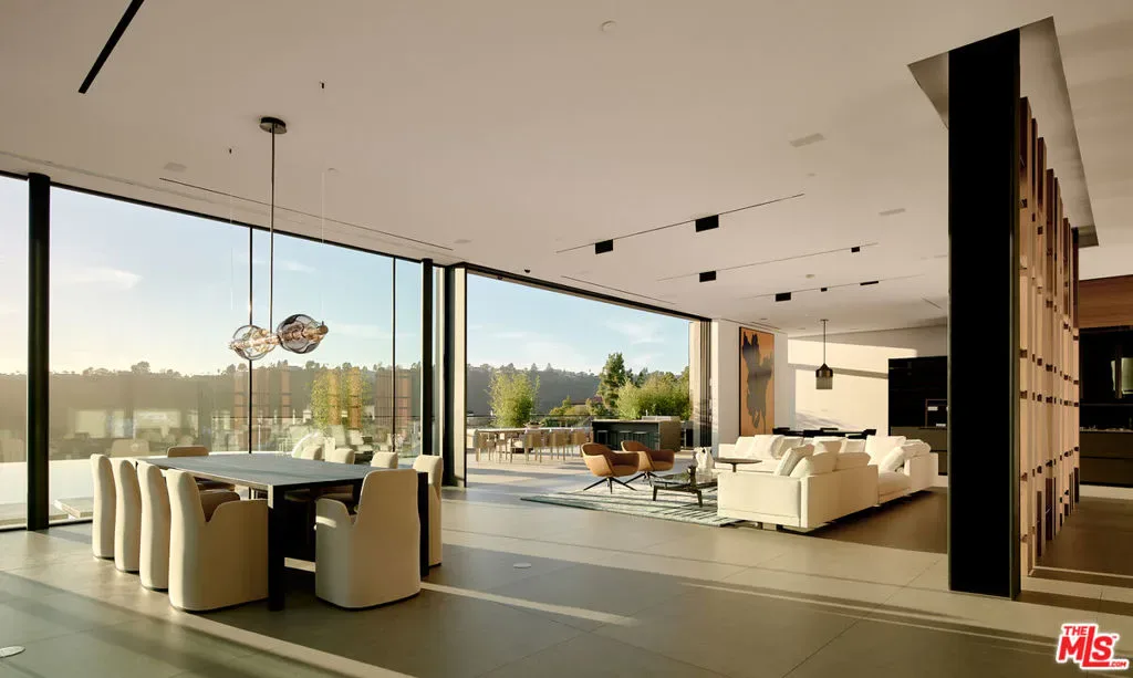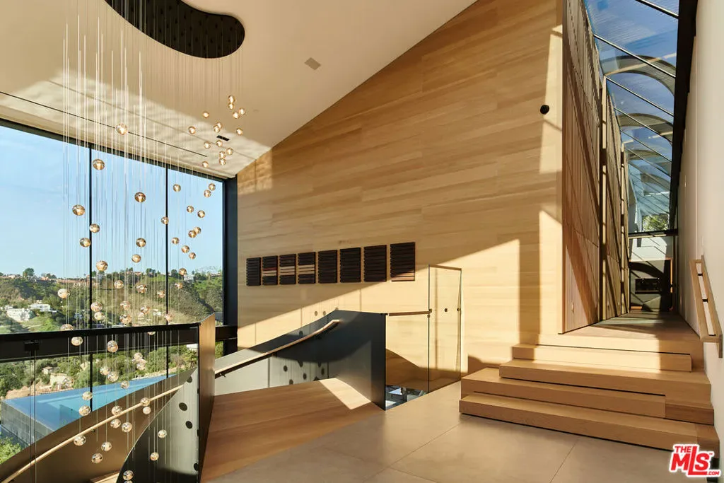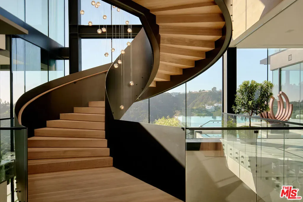 Enveloped in the lush landscape and bound by the masterful vision of icons in quality and thoughtful execution, award-winning architectural firm Tag Front and world-renowned interior designer Cesar Giraldo, 1857 Bel Air Road offers 20,000 square feet of venerable beauty and an artful abundance of sophistication. The sleek curvature of the exterior of the house is a work of art in itself, with clean lines, geometric shapes, and a contemporary design that exudes sophistication and elegance. An eco-green living wall and a manicured pathway above a striking water feature encompass the 350-foot width of frontage and lead to a moment of arrival, peering above the clouds and extending to the views of the ocean, Catalina Island, and the canyons from Bel Air. The grand, masterpiece spiral staircase connects two stories, appears suspended, and was carefully engineered with aluminum and steel, immediately immersing guests in the home’s meticulous design. A free-flowing main level dialogues with the outdoor veranda from the sunken formal living room and intimate entertainment spaces, to the breakfast nook and Poliform chef’s kitchen with a seamless caterer’s preparation galley ideally hidden directly behind. Each statement room is designed with a subtle transition from the last, the architecture is modern yet the amenities are luxurious. The primary suite is a true oasis, with a fireplace, a sitting area, two walk-in closets, and a spa-like shower with tubs, steam shower, and dual vanities. Three-story walls of glass drape a bamboo cove exposing the incredible backyard scape totaling 1.4 acres with an outdoor lanai, a substantial infinity pool and spa, and an effortless flow over the canyon. The lower level allows an ultimate experience in leisure and wellness, complete with a playroom, theater, gym with signature TechnoGym equipment, a wine lounge for over 1,152 bottles, and additional bedrooms to complete the nine-bedroom, ten-bath, three-powder-room offering. One of the premier tri-level estates in Bel Air, a first and last of its kind, 1859 is a home of impeccable attention to detail, an unmistakable eye for global design, and one of the finest vast view lots in Los Angeles. All in all, this Bel Air modern masterpiece is a true gem, offering the ultimate in luxury living. With its stunning design, top-of-the-line finishes, and state-of-the-art amenities, this is the perfect home for one who wants the best of everything.