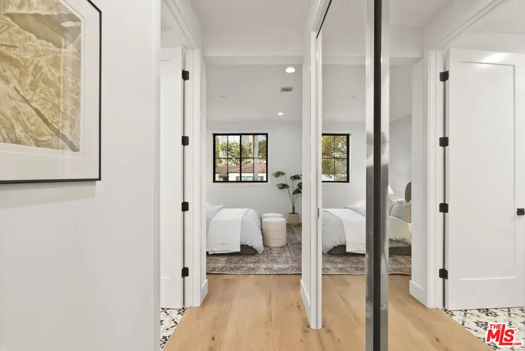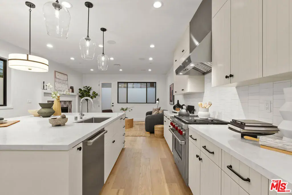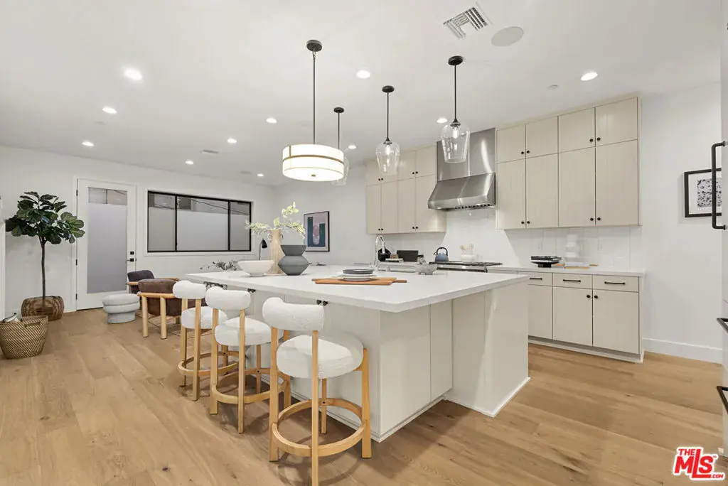 Welcome to Villa Benecia, Spanish for “the blessed one.” This stunning, brand-new 2026 Thomas James Homes (a national leader in high-quality residences) modern Spanish-style townhouse condominium built with quality craftsmanship, never lived in, features an elevator, attached garage, and an exceptional location in the highly sought-after Century Glen neighborhood. Ideally located just west of Westfield Century City and east of Beverly Glen, the home is blocks to fine dining, shopping, fitness centers, and more. Positioned on a hilltop, the residence offers beautiful views of the Century City skyline. Enter from the attached garage or through the formal covered front door into a dramatic entry hallway with high ceilings and warm hardwood floors. The main level features an open-concept dream kitchen with Wolf and Sub Zero appliances, a large center island seating up to six, a spacious living room with gas fireplace, and a generous balcony overlooking the private yard below. This level also includes a powder room and elevator access to all three floors. The top floor offers a luxurious primary suite and a guest bedroom, both with en-suite bathrooms, along with a laundry room and a flexible landing area ideal for a desk or seating nook with Century City views. The primary suite boasts abundant natural light, views of the Wilshire Corridor skyline, a walk-in closet, and a spa-like bathroom with expansive vanities, a large shower, and a freestanding soaking tub. The guest bedroom features ample closet space, a well-appointed en-suite bath, and stunning skyline views. The lower level, adjacent to the private backyard, provides an expansive open space ideal for a second guest suite, screening room, or entertainment area, complete with an en-suite bathroom. Rare offering with New Solar Panels on Roof. One of only two units available.