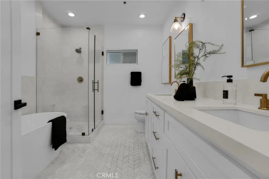 Stunning remodeled condo in a prime location! No detail was overlooked in this beautifully upgraded modern end unit, perfectly positioned to span the length of the building, offering exceptional privacy and an abundance of natural light through additional windows. The open-concept floor plan features a spacious living room with recessed lighting and a cozy fireplace, seamlessly flowing to an expansive private balcony…perfect for relaxing or entertaining. The gourmet chef’s kitchen is a true highlight, showcasing newer stainless steel appliances, sleek finishes, and ample cabinetry. Luxurious primary suite, complete with a spa-inspired ensuite bathroom featuring a freestanding soaking tub, dual vanities, and elegant stone. Enjoy the convenience of oversized dual closets and French doors that open to a private patio. Additional features include a custom-built workspace ideal for remote work, in-unit washer and dryer, and a newer HVAC system for year-round comfort. Ideally located just minutes from dining, theater, UCLA, Westwood, Westfield Shopping Mall, Sawtelle Blvd and much more!! This luxurious condo truly offers the perfect blend of style, comfort, and convenience!