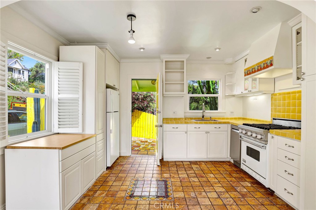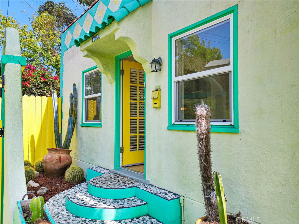 Perched above the treetops of Elysian Heights, this enchanting two-story Spanish-style casita offers a rare blend of privacy, character, and breathtaking hillside tranquility in the heart of Echo Park. Tucked away on a peaceful cul-de-sac, the home feels like a secluded artistic retreat while remaining moments away from the neighborhood’s beloved cafés, markets, and scenic trails. Inside, sunlight fills inviting living spaces, highlighting rich wood floors, custom built-ins, and vibrant details that celebrate the home’s vintage charm. The kitchen features striking custom tile work and a Viking range, blending timeless style with modern functionality while flowing seamlessly into the dining and living areas. French doors open to a serene outdoor setting where sweeping treetop vistas stretch toward the Downtown Los Angeles skyline. Enjoy quiet mornings on the patio or unwind on the covered rear deck as the peaceful hillside surroundings create a sense of calm rarely found so close to the city. The flexible layout includes two bedrooms upstairs and a downstairs primary suite with a fireplace, walk-in closet, and beautifully tiled bath with a clawfoot tub. French doors open directly to a private garden patio, creating a tranquil sanctuary. An air-conditioned detached studio offers a creative’s dream space—perfect for a recording, art, or photography studio, private gym, yoga retreat, or inspiring work-from-home environment. Surrounded by lush greenery yet minutes from Echo Park favorites including Canyon Coffee, Cookbook Market, Bacetti Trattoria, and the trails of Elysian Park, this distinctive hillside bungalow offers a rare opportunity to own a peaceful, design-forward retreat in one of Los Angeles’ most coveted neighborhoods.