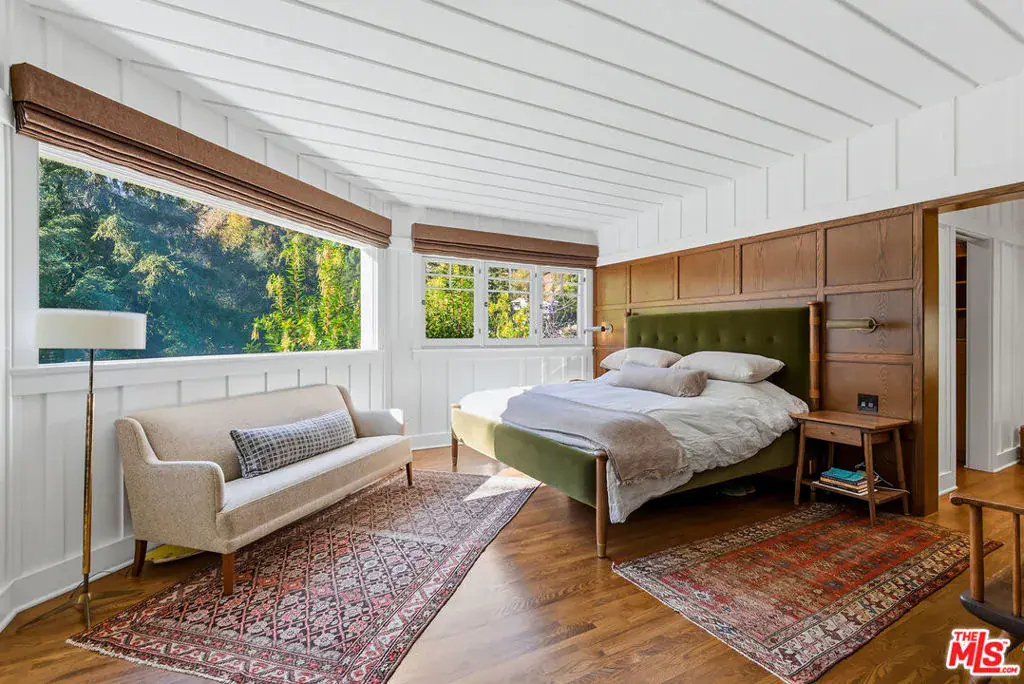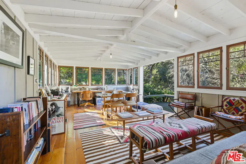Rare lease offering at the end of a storied Laurel Canyon street. The Oakstone Manor is an estate-level architectural compound featuring a Lloyd Wrightdesigned addition, surrounded by mature oaks and lush canyon greenery. Main residence offers 4 bed+ 3 bath, library, children’s playroom, hand-crafted woodwork, generous eat-in kitchen, and expansive deck and covered dining. Secluded grounds include sun-filled pool and sun deck and parking for six vehicles. Additional amenities include a two-story 1 bed+ 1 bath guest house, sauna and cold plunge, bonus 650sf custom hillside office, and private gym/dojo with half bath. Located within the coveted Wonderland School District. First time available for lease. Exceptional privacy, pedigree, and canyon lifestyle.