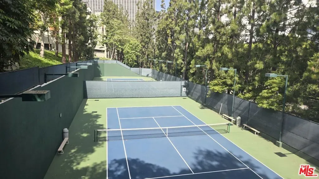 An exceptional opportunity to experience refined, resort-style living at the prestigious Century Park Place. This elegant 2-bedroom, 2-bath residence is surrounded by lush, manicured grounds, with tranquil greenbelt and tree-top views enjoyed from its south-facing balcony. A striking river rock entry introduces a sophisticated interior where clean lines and thoughtful design come together seamlessly. The kitchen is appointed with Caesarstone countertops, a built-in breakfast nook overlooking the courtyard’s fountain, abundant cabinetry, and newer stainless steel appliances. The expansive, living room is bathed in natural light and anchored by a corner fireplace, while the open dining area, enhanced by custom built-ins and a contemporary chandelier, creates an effortless setting for both intimate dinners and stylish entertaining. A thoughtfully designed split-bedroom layout offers optimal privacy, with each bedroom featuring its own walk-in closet with built-in organizers. The serene primary suite overlooks treetop and greenbelt vistas and is complemented by dual vanities and a spacious shower with a built-in bench. The secondary bedroom includes an additional wall closet and access to a full bath. A full-size washer and dryer are discreetly tucked into a dedicated closet. Residents of Century Park Place enjoy an unparalleled lifestyle with 24-hour guard-gated security, beautifully landscaped grounds, and an array of resort-caliber amenities. These including multiple pools, hot tubs, tennis courts, pickleball courts, basketball court, fully equipped fitness centers and sauna in each building, and a well-appointed clubhouse — all just moments from the world-class shopping, dining, and entertainment of Westfield Century City. HOA fee includes internet, cable, gas, water, sewer and trash. Be sure to check out in the documents section community sketch which demonstrates the ideal location of building 3 — where this condo is located.