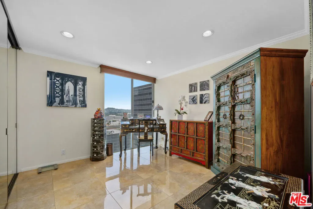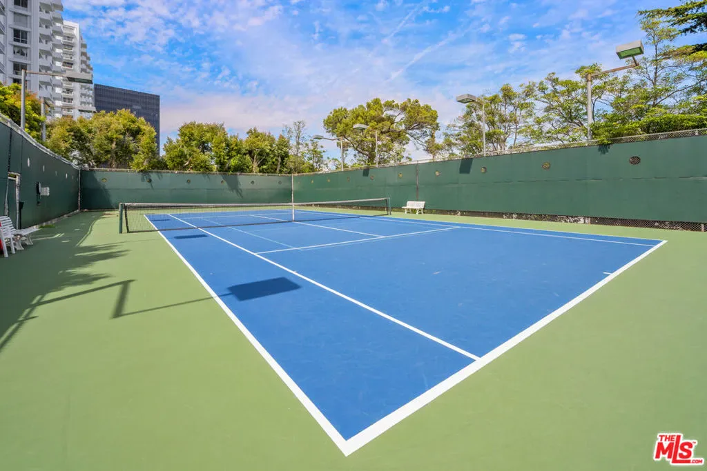 Breathtaking VIEWS from the 17th floor corner residence! This rare north/west corner residence is one of only 20 in the building to offer this highly coveted corner vantage point. This 2-bedroom, 2-bathroom home with dual balconies captures sweeping panoramic views of all Los Angeles to the ocean. Expansive walls of windows wrap the living area, filling the space with natural light and framing dramatic city vistas. The kitchen is thoughtfully updated with custom cabinetry, countertops, backsplash, and a full suite blend of Miele and JENN-AIR stainless steel appliances, while tile flooring runs throughout the home for a clean, modern finish. Both balconies provide ideal settings for outdoor dining or relaxing above the skyline. The primary suite features a walk-in closet and a beautifully renovated bathroom. The oversized second bedroom includes a full wall of custom closets and is complemented by a stylishly updated second bath. The residence also includes assigned parking and additional storage. Residents enjoy a full-service lifestyle with 24-hour security, a staffed doorman, valet, and guest parking. Resort-style amenities include an Olympic-sized heated pool with sundeck, tennis court, fitness center, sauna, landscaped grounds, playground, and dog park with pet wash station. HOA dues cover water and air conditioning, and on-site management ensures convenience and ease. Designed by renowned architect Charles Luckman in 1966, this iconic building is a recognized architectural landmark. Walking distance to Century City mall, featuring Javier’s, Eataly, and much more. Just a short drive to Beverly Hills and the Westside’s premier restaurants, schools, golf, and a variety of popular shopping destinations, and the most prestigious businesses in Brentwood, Westwood, LAX, Century City, Santa Monica, and the ocean. Arrange a private tour to fully appreciate the lifestyle offered by this property.