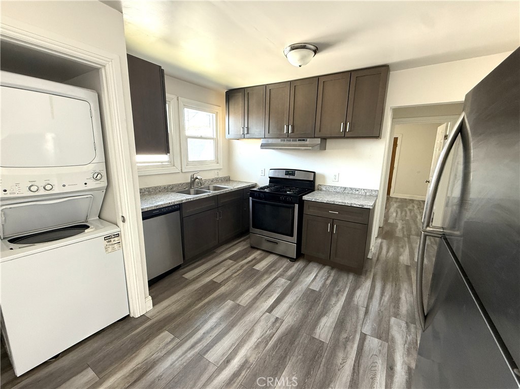 The kitchen provides sufficient cabinet space for everyday storage and functionality. The unit also includes the convenience of an in-unit washer and dryer, along with two parking spots on the premises.