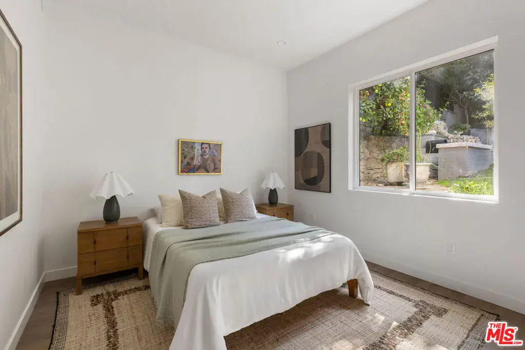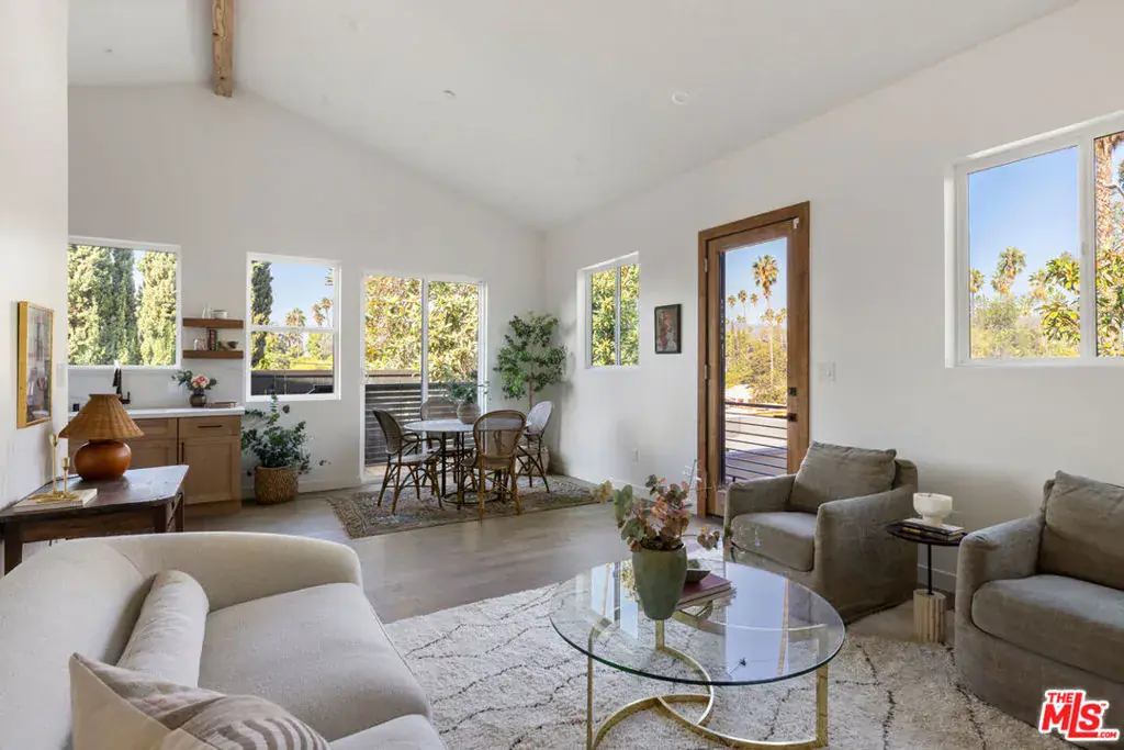 In prime Silver Lake, this beautifully updated Traditional feels tucked away above the street, just moments from the energy of Sunset Blvd. Soaring ceilings with exposed beams set the tone in the spacious great room, filled with natural light and enjoying scenic treetop views. The open kitchen is stylish and bright, featuring stainless steel appliances and generous counter space; glass sliders open to the balcony, a breezy spot for your morning coffee. Three bedrooms and two baths accommodate your needs, with the primary suite occupying the entire second level. The large yard creates a sense of serene seclusion; a secret garden hidden in the trees, with a patio for dining al fresco and a grassy expanse for relaxation and play. Amenities include updated systems, AC/heat, a detached storage unit, and a garage. Andante Coffee Roasters, Bar Bandini, Greekman’s, Pijja Palace, and Bodega Park are just blocks away, and it’s a short hop to all the recreation at the Silver Lake Reservoir, Meadow, and Dog Park.