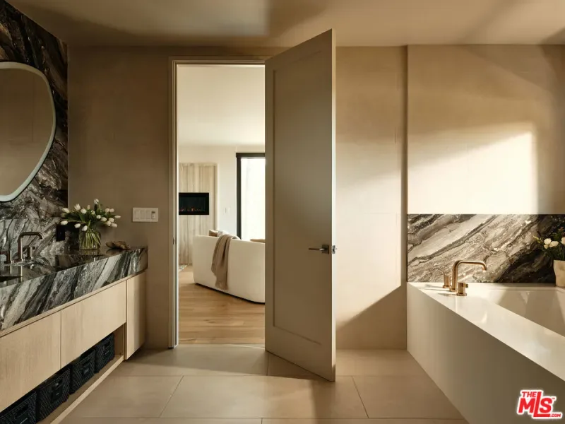 As featured in Architectural Digest, this modern Brentwood estate offers 7 bedrooms, 10 bathrooms, and sweeping ocean and canyon views. Set on a lush, private lot, the residence balances refined architecture with effortless indoor outdoor living. Walls of glass and natural materials flood the home with light and frame the landscape from nearly every room. Multiple patios and connected entertaining areas create an easy flow for hosting gatherings or quiet everyday moments. The chef’s kitchen pairs top-tier appliances with clean, modern lines and bold designer details – equally at home for early morning coffee or a lively dinner party. The serene primary suite offers a spa-worthy bath, expansive walk-in closet, private balcony, and warm, curated finishes. Other bespoke features include an intimate, clubroom-style speakeasy, a dedicated gym/wellness center, and a 1,000 sq ft rooftop deck that captures the breathtaking views. Designed for privacy and connection, the home transitions effortlessly between vibrant entertaining and tranquil retreat – California living at its finest.
