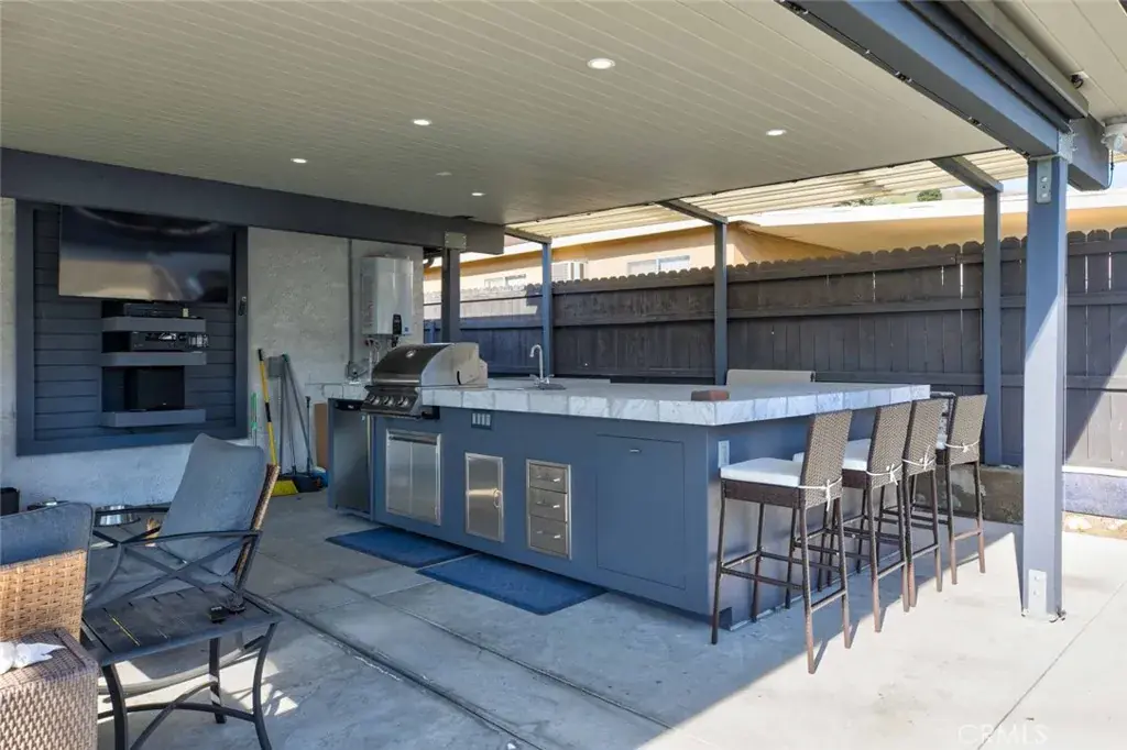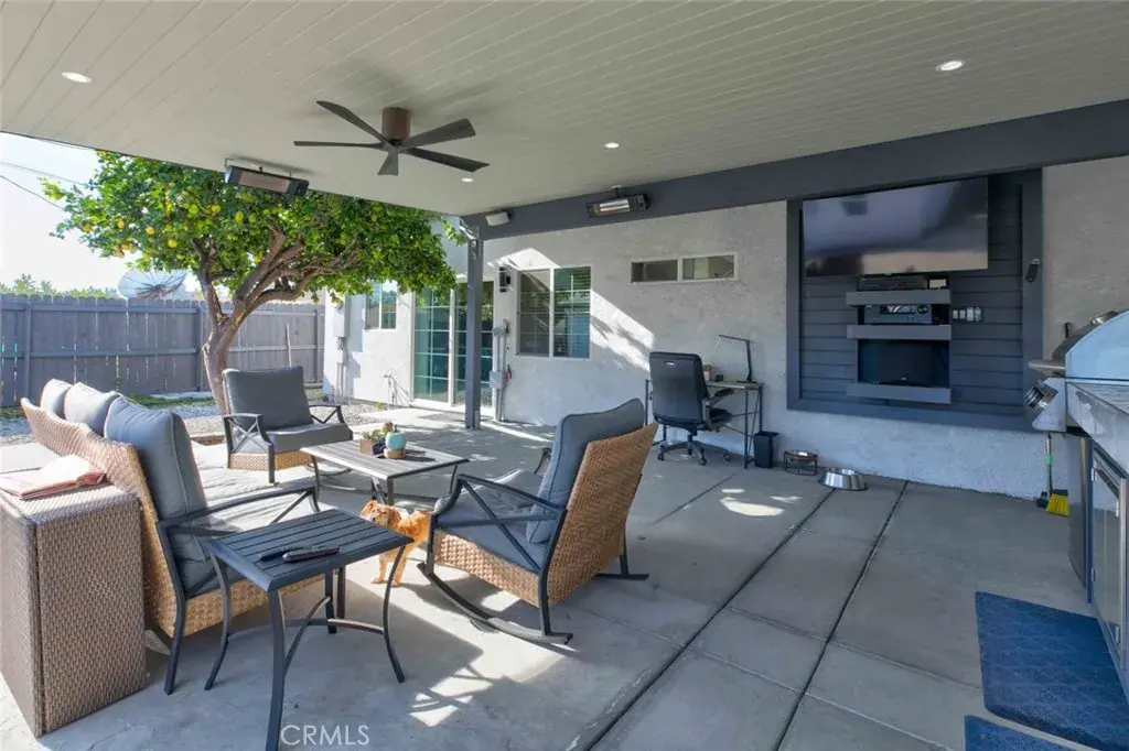 A standout feature is the detached approximately 272 square foot studio, offering excellent flexibility for a home office, guest space, creative studio, or additional retreat area. The backyard is designed for indoor outdoor enjoyment and includes a patio with a covered deck, recessed lighting, ceiling fans, and a built in barbecue with bar seating, ideal for entertaining and relaxing.
