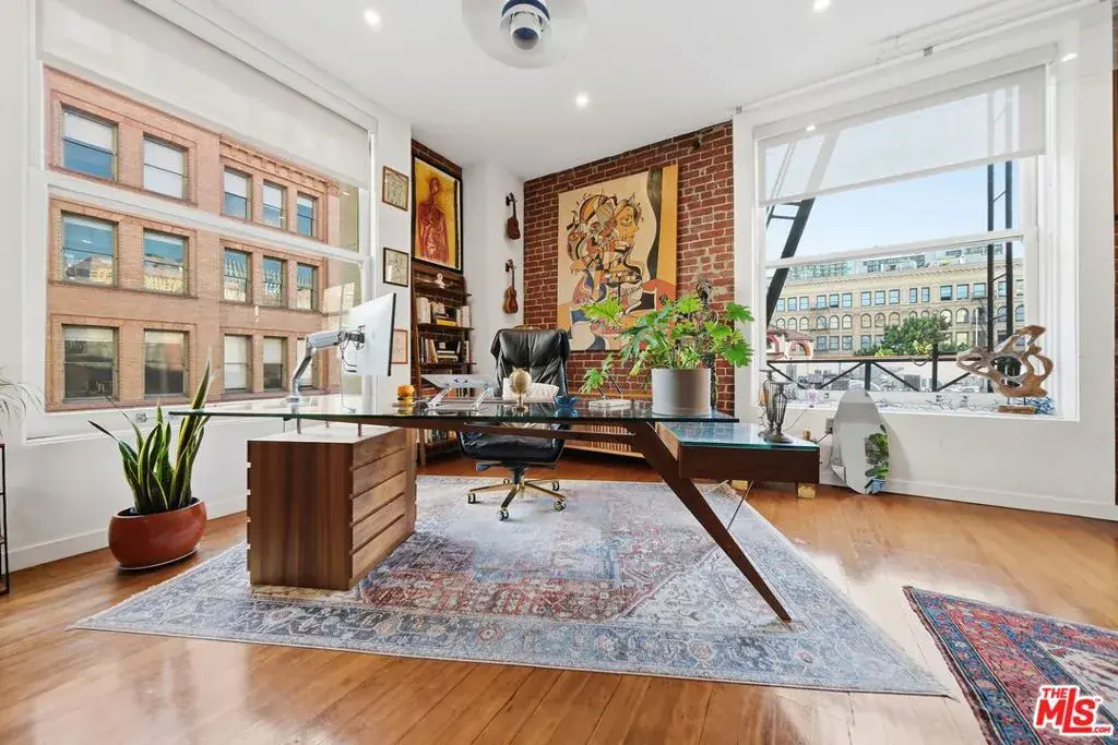 This STUNNING corner loft, with 9ft tall ceilings, exposed brick, massive operable windows, cross- ventilation, and dramatic views of the world-famous Bradbury Building and the beautiful DTLA skyline, must be seen in-person to be appreciated. This wonderful loft features: an historic entry door; historic tile and wood floors; a dramatic foyer and entry gallery; very large and open, loft-style living, dining and kitchen areas; Poggenpohl kitchen cabinets and countertops; Bosch appliances, including a gas stovetop; a stackable washer and dryer; a Waterworks bathroom, including a large, deep, soaking bathtub; a large, separate private bedroom with a door for privacy; custom window coverings; and a recently replaced HVAC system, and new electrical breaker box. The Douglas Building (DB), located at the northwest corner of S Spring and W 3rd Streets in Downtown Los Angeles (DTLA), was completed in 1899 as an office building by the estate of Thomas Douglas Stimson, and is one of the most sought-after adaptive re-use addresses in the Central City. In 2005, the developer took great care to utilize as much historic fabric as possible, but the lofts themselves, including all utilities, were new construction. Designed by Reid Brothers Architects in the “Classic Revival Style,” and located just two blocks south of Los Angeles City Hall, and one block from the iconic Grand Central Market (GCM), the DB benefits from The Mills Act, which significantly reduces the property taxes for the buyer. The DB is a dog (and cat!) loving building, has a doggy potty area, and the Police Headquarters “dog park” lawn is only a block away at S Spring and W 2nd Streets. The Historic Broadway subway station is located on the same block as the DB, at the southeast corner of S Broadway and W 2nd St. Although the DB has no on-site building amenities, DTLA itself is the amenity, including the GCM, Grand Park, the Music Center, which includes the Walt Disney Concert Hall, The Broad Museum and many restaurants and bars within easy walking distance. We hope you’ll come to see Unit 2M soon!