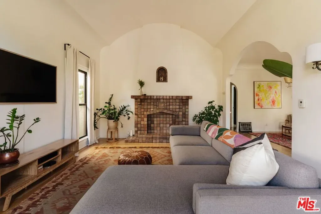 In the heart of Silver Lake, this 1925 Spanish Revival blends classic architecture with thoughtful updates, offering warmth, character, and an easy connection to its surroundings. Located within the highly sought-after Ivanhoe School District, the home is set slightly above the street and surrounded by mature trees, creating a rare sense of privacy, along with four striking palm trees that define the property’s presence. The living room is rich in detail, with high coved ceilings, an elegant arched picture window, and an original Batchelder tile fireplace anchoring the space. Just beyond, a flexible dining room currently styled as a sitting area features sliding glass doors that open to the front patio, creating a natural flow for everyday living and casual entertaining. The kitchen is bright and efficient, with updated appliances, a cozy breakfast room, and an adjacent laundry. Two bedrooms are well-positioned for comfort and privacy. The primary suite includes an en-suite bath and generous wardrobe storage, along with a door that opens directly to the backyard. The second bedroom is served by a full hall bath. Outside, the yard unfolds across a generous patio and terraced garden, offering multiple spaces to dine, relax, or gather under the open sky. A finished garage adds flexibility, well-suited for a studio, workspace, or home gym. Thoughtful system and infrastructure upgrades, including updated windows and doors, insulation, HVAC, roof, and foundation work, provide comfort and confidence without compromising the home’s original character. Just moments from the Silver Lake Reservoir and Meadow, and close to neighborhood favorites like Salazar, Blair’s, Taqueria Frontera, Hot Tongue Pizza, Edendale, Makisupa Coffee Bar, Broome Street, and Whole Foods, with easy access to Los Feliz and Atwater Village. The best of Silver Lake living, with everything just moments away.