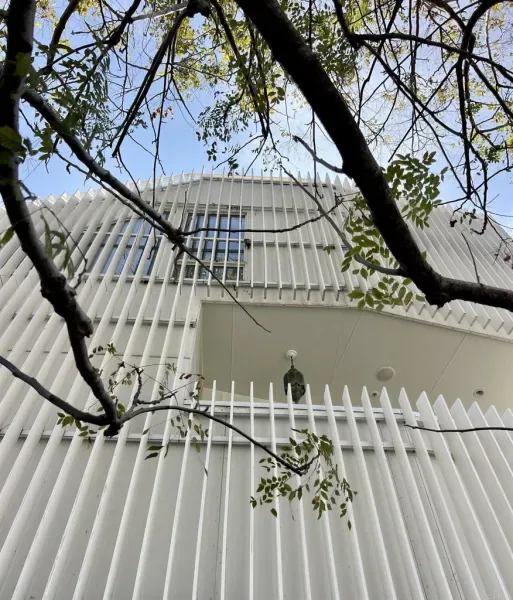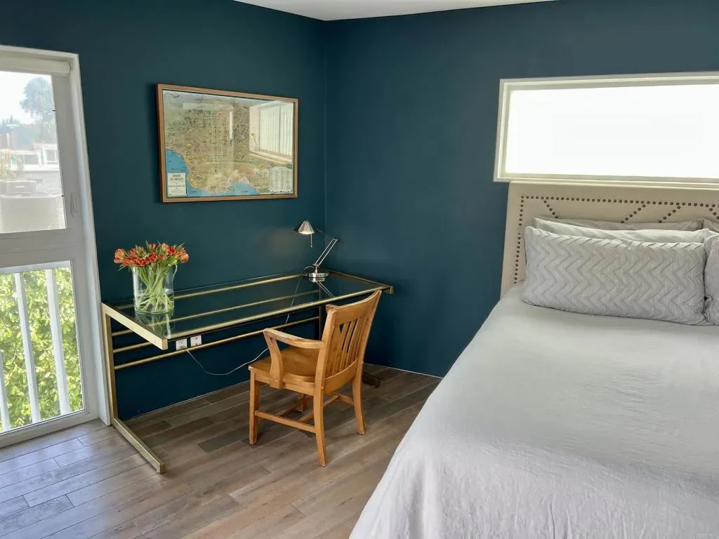 One of only six modern single-family homes built in 2012, this architecturally distinctive residence is LEED Platinum certified and recipient of the 2014 AIA Merit Award. Set within a private gated courtyard, the home’s striking exterior vertical fins ensure privacy while allowing ample natural light and views from every angle inside. An open, easy-flowing split-level floor plan features hardwood floors throughout, two large storage closets, a spacious chef’s kitchen with stainless steel appliances, walk-in pantry, custom cabinetry, and Caesarstone countertops. The dining room opens to a balcony, perfect for seamless indoor-outdoor living. Upstairs, the generous primary suite includes a large walk-in closet and direct access to a private roof deck with sweeping 360-degree views stretching to the Griffith Observatory, accompanied by a secondary bedroom suite and convenient stacked laundry closet. Just minutes from the reservoir, LA River path, and an array of restaurants and shops — an unbeatable Silver Lake location.