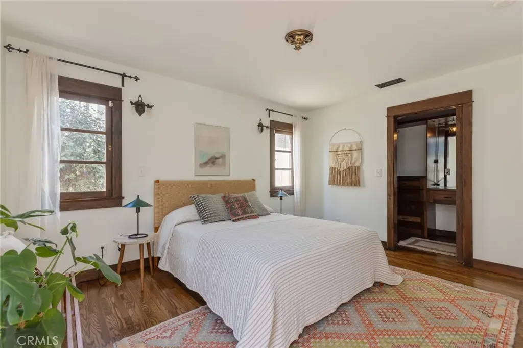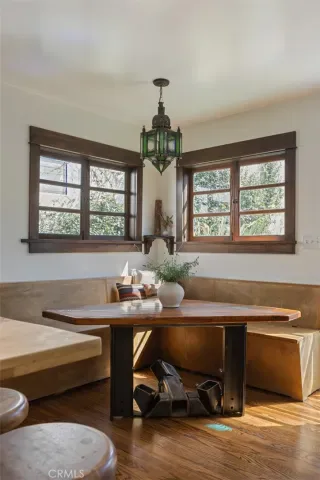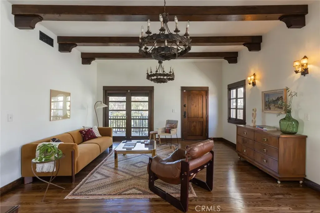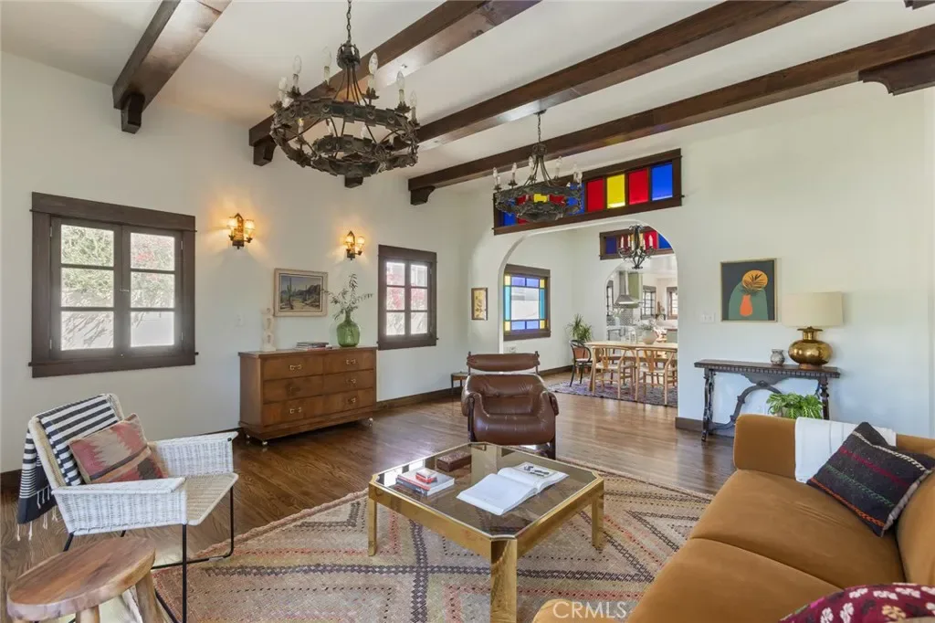 Tucked into one of Atwater Village’s most charming pockets, this beautifully restored Spanish-style home offers a rare blend of timeless architecture and stewardship. The three-bedroom, two-bath residence has been meticulously renovated by its owners with deep respect for the home’s architectural heritage. High beamed ceilings, graceful arches, and abundant natural light create an airy sense of openness throughout, while carefully sourced vintage light fixtures and tiles, handsome hardwood flooring, and stained-glass windows reflect the spirit of the era. Thoughtful design finishes seen in the skylights, millwork, fixtures and built-in furniture — add layers of character and craftsmanship. The living spaces feel both warm and expansive, with a natural flow designed for everyday living and gathering. Classic Spanish details alongside updates that support modern comfort, including updated electrical and plumbing systems, newer kitchen appliances, solar panels, and significant structural improvements such as foundation upgrades and seismic retrofitting. Outdoors, the grounds unfold into a lush and productive garden landscape, with gated parking for two cars and EV charging. Mature grape vines, pomegranate, lemon, fig, plum, and avocado trees provide seasonal abundance, while sculptural succulents and established plantings add texture and color throughout the property. The front patio and backyard offer multiple spaces to pause, entertain, and enjoy the surroundings — from quiet mornings with coffee to relaxed evenings under the open sky. Just moments from Atwater Village’s beloved cafes, shops, restaurants, and farmers market, this peaceful, chic retreat awaits.