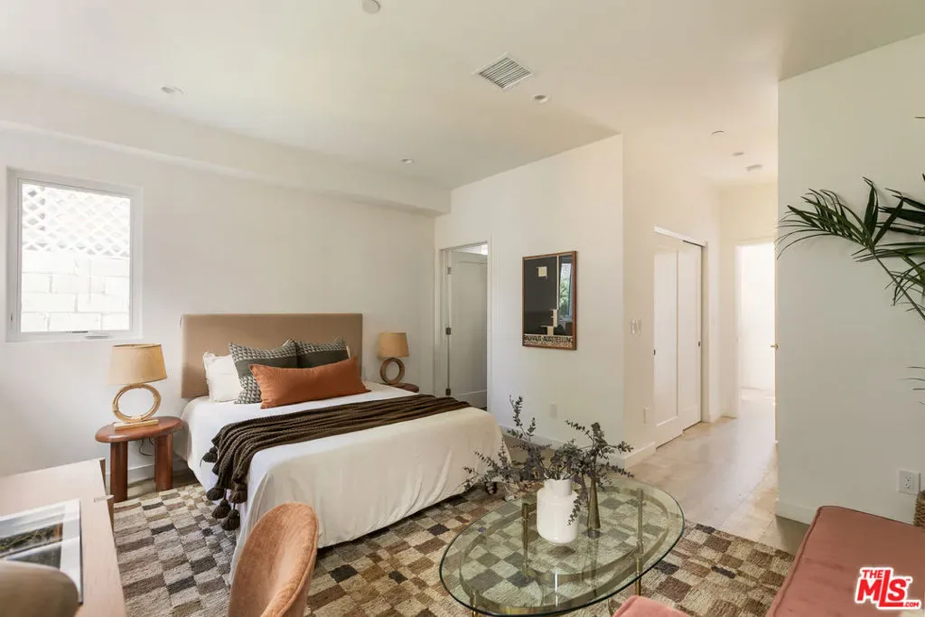 A newly constructed 3-bedroom, 4-bath residence in the heart of Echo Park, offering a refined blend of modern design, warm finishes, and sweeping views of Downtown Los Angeles and surrounding treetops. Designed with a clean, contemporary aesthetic, the home is filled with natural light, enhanced by expansive windows and thoughtful orientation. The main living spaces flow effortlessly, creating a layout that feels both relaxed and elevated, ideal for everything from quiet mornings to hosting friends.The kitchen strikes a perfect balance of style and function, featuring stone surfaces, ample cabinetry, and warm, curated details that make it as inviting as it is practical. Bathrooms continue that same thoughtful approach, with textured tile, clean lines, and a polished, modern finish throughout. Three well-proportioned bedrooms offer privacy and flexibility, featuring walk-in closets and individual bathrooms, creating a comfortable sense of separation throughout the home. Outdoor spaces are where the home truly shines. Two private balconies capture views of Downtown Los Angeles, while the private yard offers a versatile space for relaxing, dining, and entertaining. Together, they create a seamless indoor-outdoor lifestyle that feels both open and connected to the surrounding neighborhood. Additional features include in-unit washer and dryer, HVAC, paid-off solar panels, and two tandem covered parking spaces. Ideally located just around the corner from Vinovore, Be U, Doto, and Cafecito Organico, and moments from both Silver Lake and Echo Park, this home offers a lifestyle that feels both vibrant and effortless.