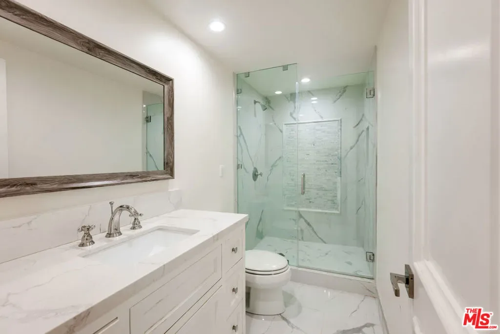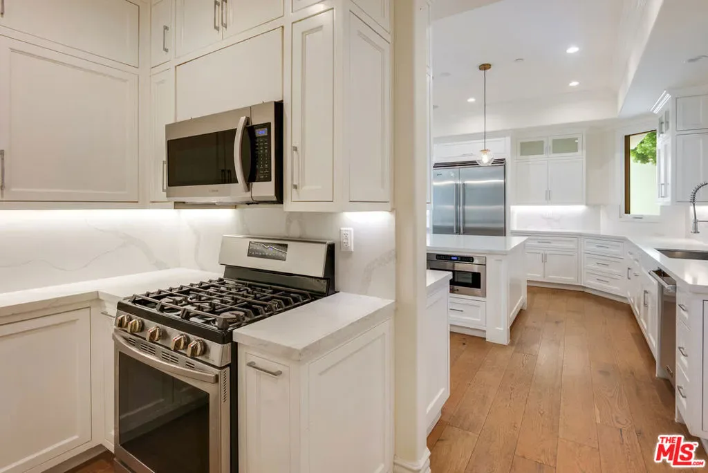 Wonderful opportunity to live in Brentwood on the most walkable street! This Mediterranean home is newer – 3 levels, huge entry, open floorplan, large kitchen with center island and separate “cooks kitchen area”. Family room with French doors opening to yard. Formal dining room and guest suite on main level. Upstairs is a large primary suite with large bathroom and dual closets. There are 3 additional ensuite bedrooms all high ceilings and wood floors throughout. The lower level has a theatre and family room and 2 additional bedrooms ensuite (could be a gym) and laundry is located there. The yard accommodates outdoor dining, a basketball area and a small office or additional storage. The home is gated with a 3 car garage and plenty of parking. Enjoy all the amazing cafes and restaurants along San Vicente as well.