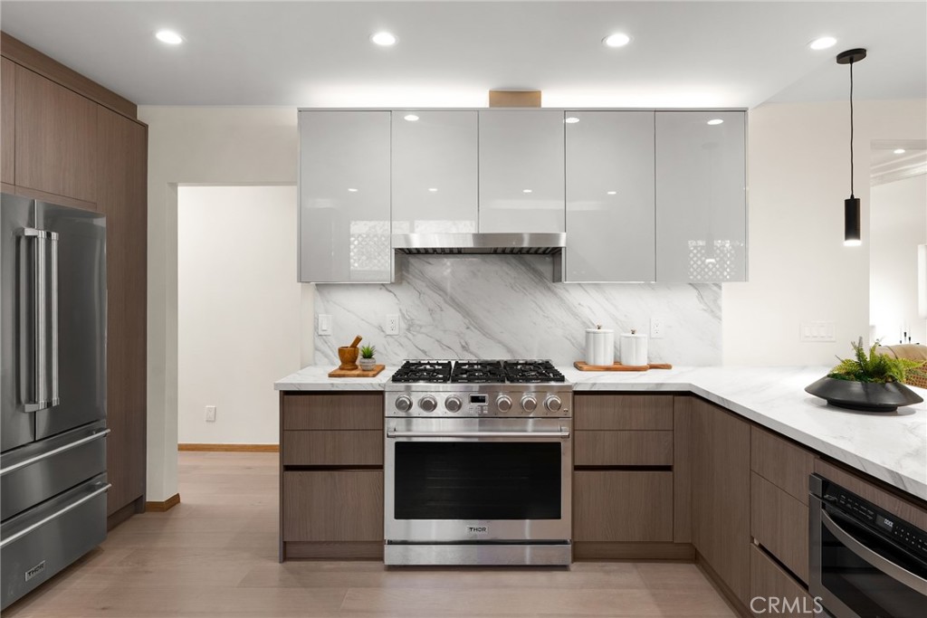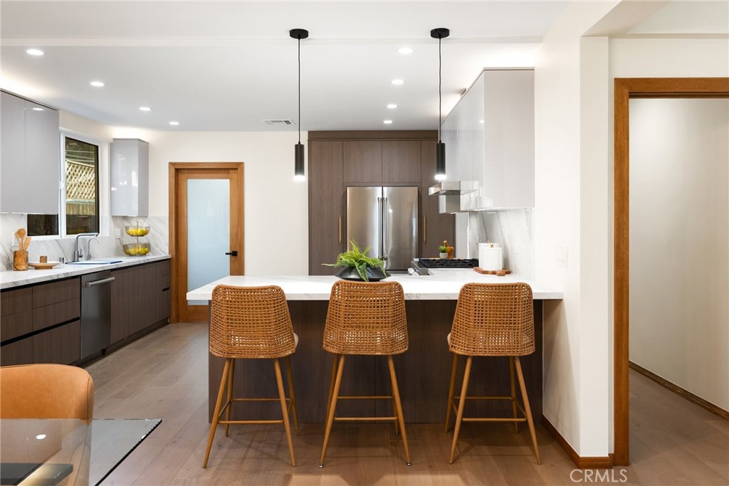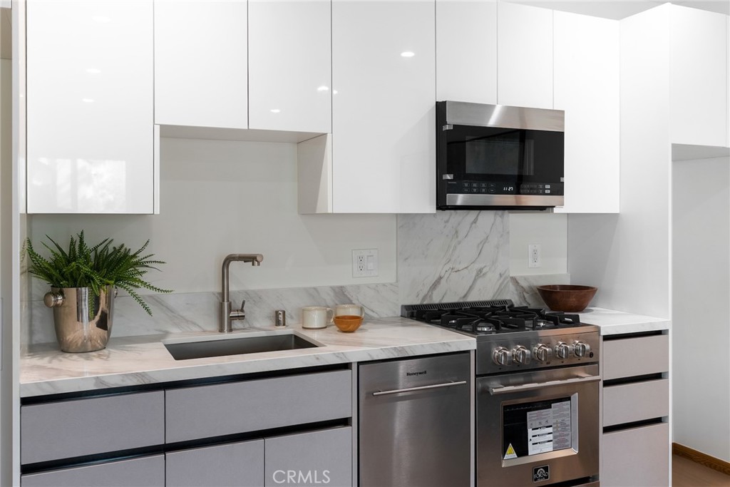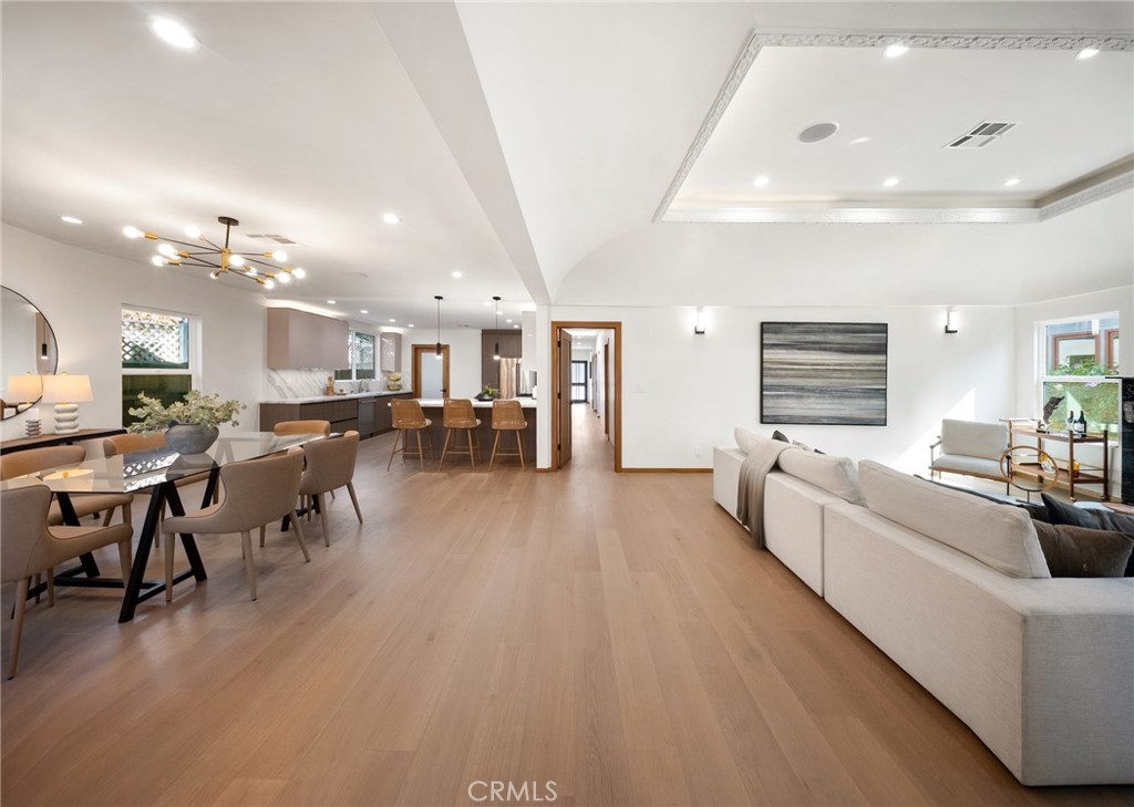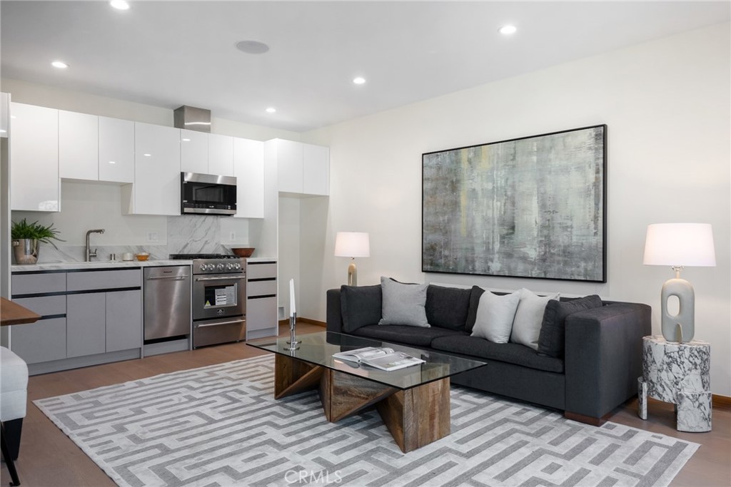 Welcome to 348 & 350 South Orange Drive, an exceptional opportunity to own two homes for the price of one in a prime central Los Angeles location. Step into this fully reimagined 2025 remodel, a gated and private 4-bedroom, 4.5-bath home where every detail reflects high-end craftsmanship and sophisticated style. As you enter the home, you’re immediately greeted by an inviting open-concept floor plan that seamlessly connects the dining area, kitchen, and living room. Natural light floods the space through large windows, highlighting the white oak floors, recessed lighting, skylights, and designer fixtures that bring warmth and modern elegance throughout. The chef’s kitchen is a show-stopping centerpiece, featuring professional-grade appliances, custom cabinetry, and stone-slab countertops designed for dining and entertaining. A dedicated laundry and storage room leads to a versatile basement, perfect for a home office, gym, or creative studio. The adjacent dining area offers an ideal setting for gatherings, while the spacious living room with its statement fireplace provides a cozy focal point for relaxing or entertaining guests.