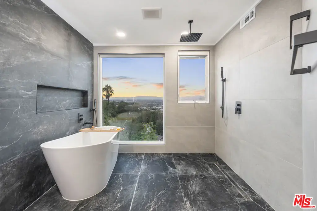 Welcome to your private hillside retreat at 3541 Multiview Drive, a beautifully renovated and fully furnished residence offering luxury, privacy, and sweeping views in the heart of the Hollywood Hills. This gated 4-bedroom, 3.5-bath home with a dedicated office and four expansive outdoor patios is designed for true retreat-style living, combining serene seclusion with immediate access to the city. Thoughtfully renovated with modern finishes and an open-concept layout, the home captures panoramic city lights and mountain views over Studio City and the Santa Monica Mountains, delivering stunning sunsets from nearly every room. The residence comes fully furnished with curated, high-end pieces throughout, including a top-of-the-line massage chair, Tempur-Pedic and Beautyrest Black mattresses, and designer dcor that elevates every space. A newly installed whole-home water filtration system provides exceptionally clean, soft, and drinkable water from every faucet. Ideal for both relaxation and entertaining, the home features an 85-inch smart TV in the living room, a 70-inch TV in the primary suite, a chef’s kitchen with premium appliances, sleek cabinetry, and a breakfast bar, as well as four spacious outdoor patios perfect for lounging, dining, and hosting with breathtaking canyon and city views. Additional highlights include a tranquil waterfall fountain and a private, fully walled setting that ensures peace, security, and privacy.The primary suite offers a true sanctuary with a spa-style en-suite bathroom, private terrace, and dramatic skyline views. One bedroom is located in a fully detached guest house, providing exceptional flexibility and privacy for guests, extended family, or a home office. The guest house includes a private full wood sauna, creating a rare at-home wellness experience seldom found in the area. Additional property features include central air and heat, in-unit washer and dryer, a one-car garage, EV charger, additional driveway parking for two vehicles, and convenient street parking directly adjacent to the home. Tucked just off Mulholland Drive, this quiet hillside property offers an unmatched balance of tranquility and accessibility, with quick access to hiking trails, entertainment, dining, and major studios. Ideal for corporate relocations, executives, creatives, or anyone seeking a fully furnished luxury residence, this exceptional home delivers a rare retreat-in-the-city lifestyle in one of Los Angeles’ most desirable neighborhoods.