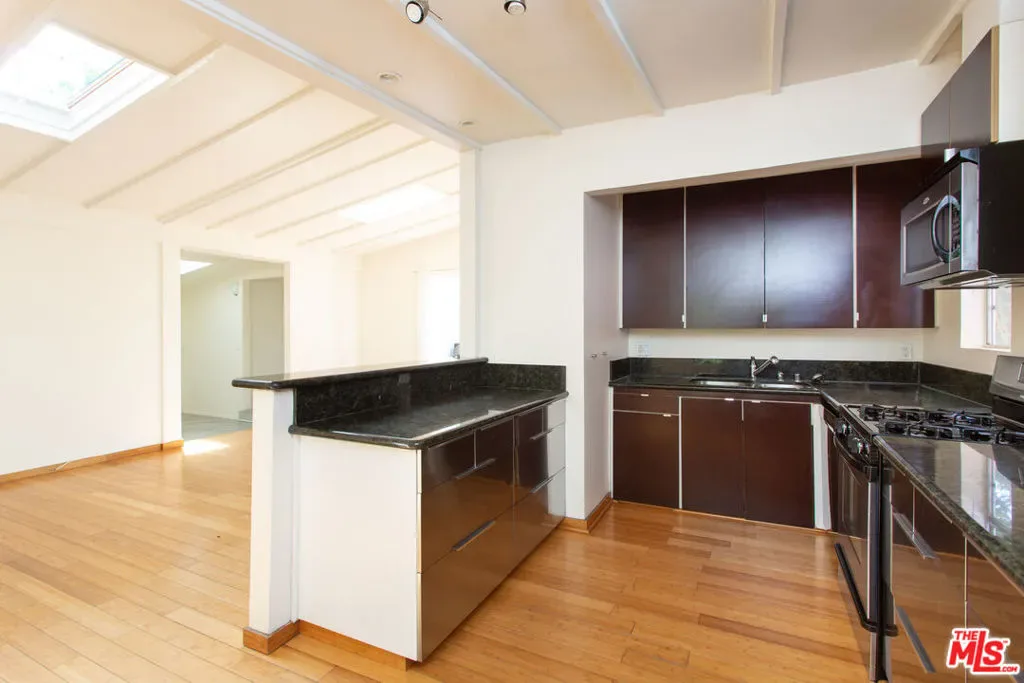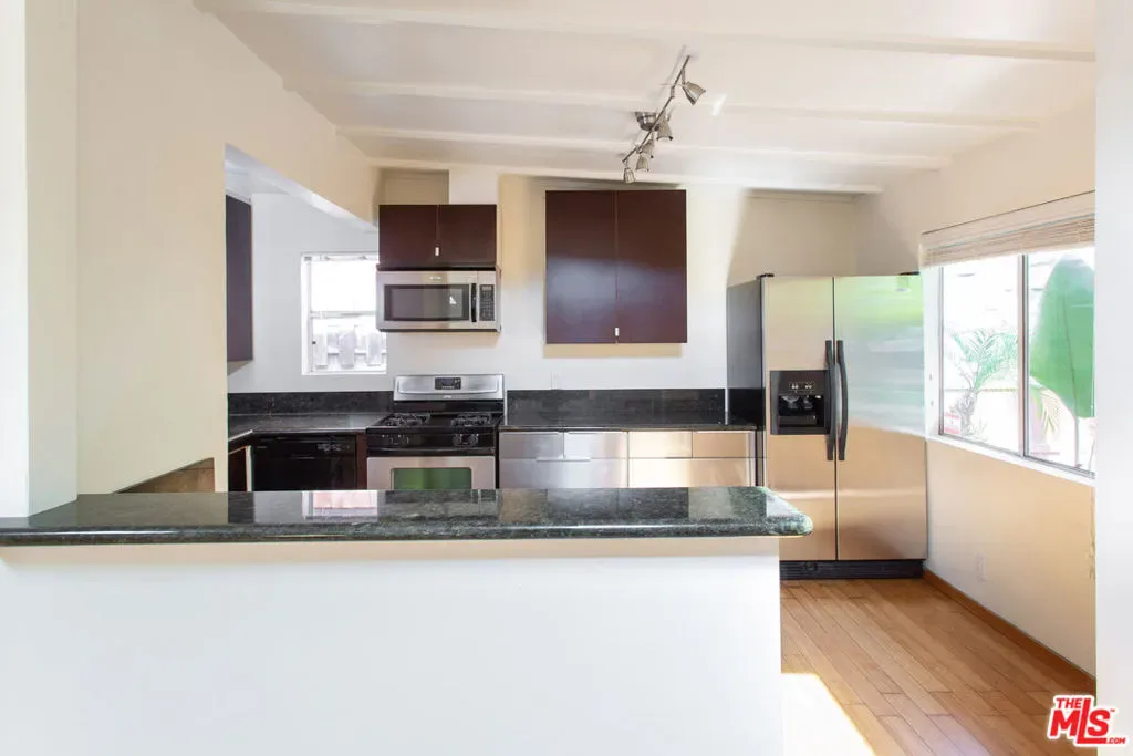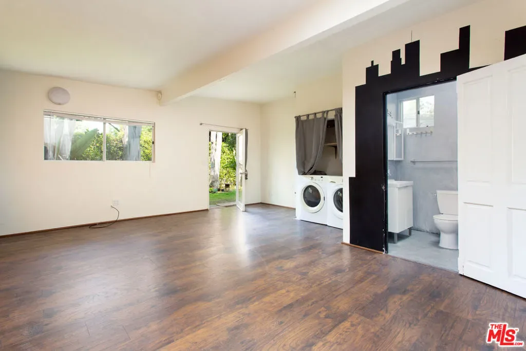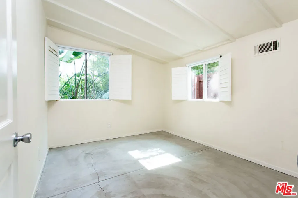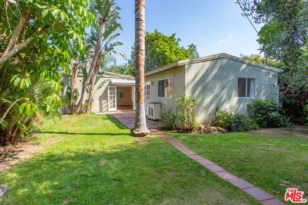 Beautifully updated and charming bungalow situated on a private, lushly landscaped lot with water permeable plants throughout. The main house offers two bedrooms and two bathrooms, featuring hardwood floors, abundant natural light, and an updated kitchen with granite countertops, stainless steel appliances, and a breakfast bar. The primary bedroom boasts French doors that open to an oasis-like backyard and patio, creating a seamless indoor-outdoor flow perfect for enjoying the California lifestyle. The finished garage has been thoughtfully converted into a studio complete with its own bathroom, offering flexible space for guests, a home office, or creative use. Ideally located within walking distance to award-winning Beethoven Street Elementary School and the Mar Vista Farmers Market, and just a short bike ride to the beach and Abbot Kinney, this home blends comfort, style, and convenience.