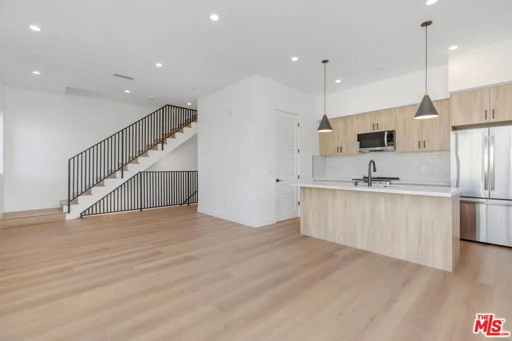 Brand new, never-lived-in corner townhome at The Pacific, where Venice’s iconic energy meets Santa Monica’s coastal polish. Soaring high ceilings and walls of oversized windows flood the home with natural light, framing the airy, open feel that sets this property apart. Wide-plank wood floors run throughout, grounding the space with warmth and texture, while large-format tile adds a sleek, resort-like finish in all the right places. The chef’s kitchen is outfitted with stainless steel appliances and anchored by custom cabinetry that blends beauty with serious storage. Designer fixtures and thoughtful lighting elevate every room. This is new construction with a genuinely curated touch. Retreat to spa-style bathrooms finished to the highest standard, or head up to the private rooftop jacuzzi deck, panoramic views, and string-lit evenings await. A home this complete, this new, and this well-located rarely comes to market. Steps to Abbot Kinney, the Venice Boardwalk, the historic canals, and the Santa Monica Pier. Live at the center of the Westside’s best.