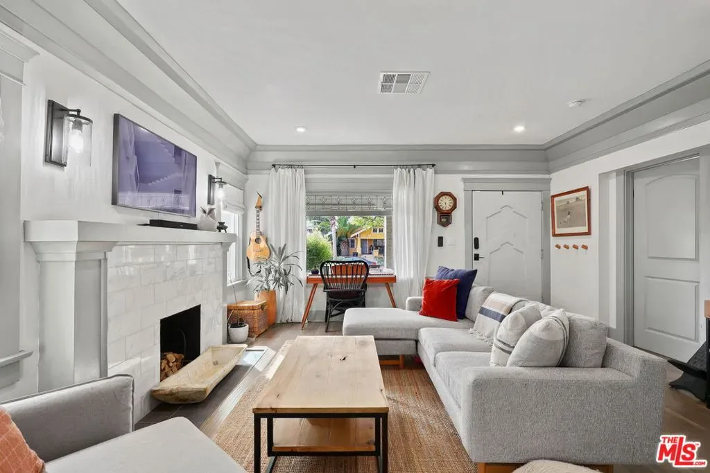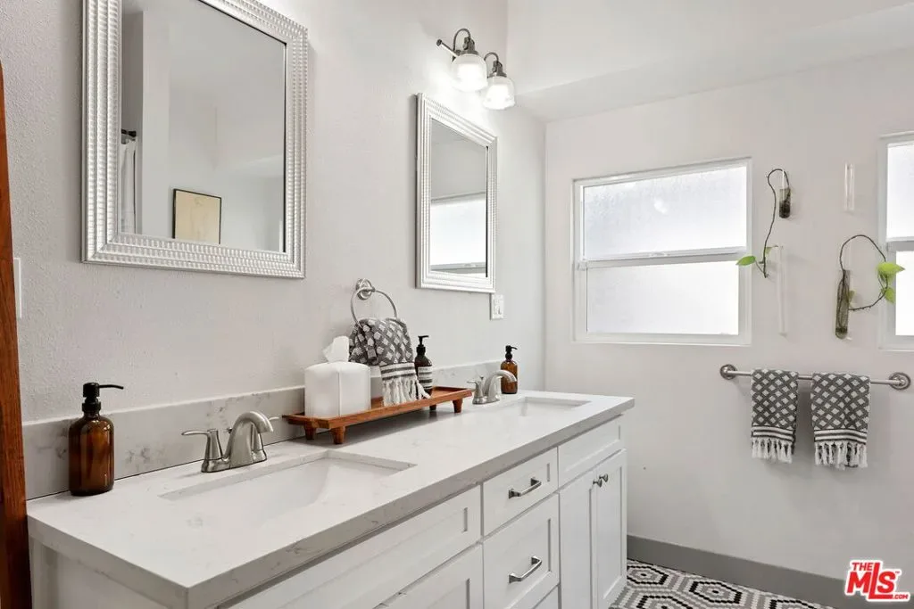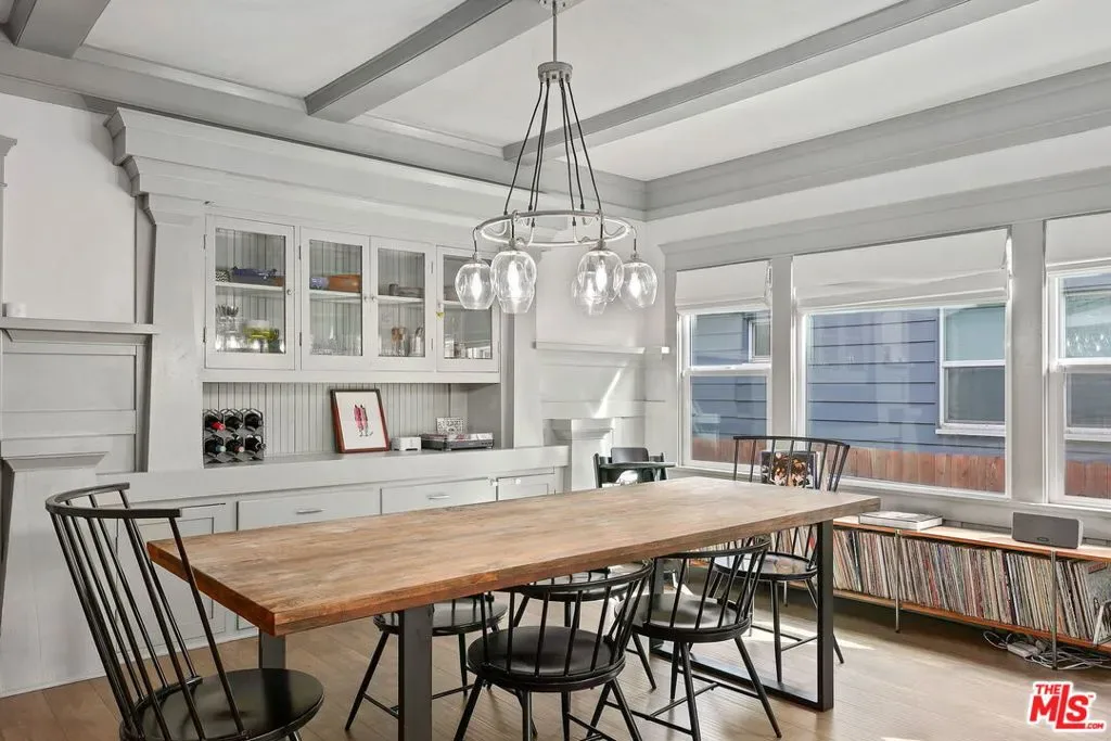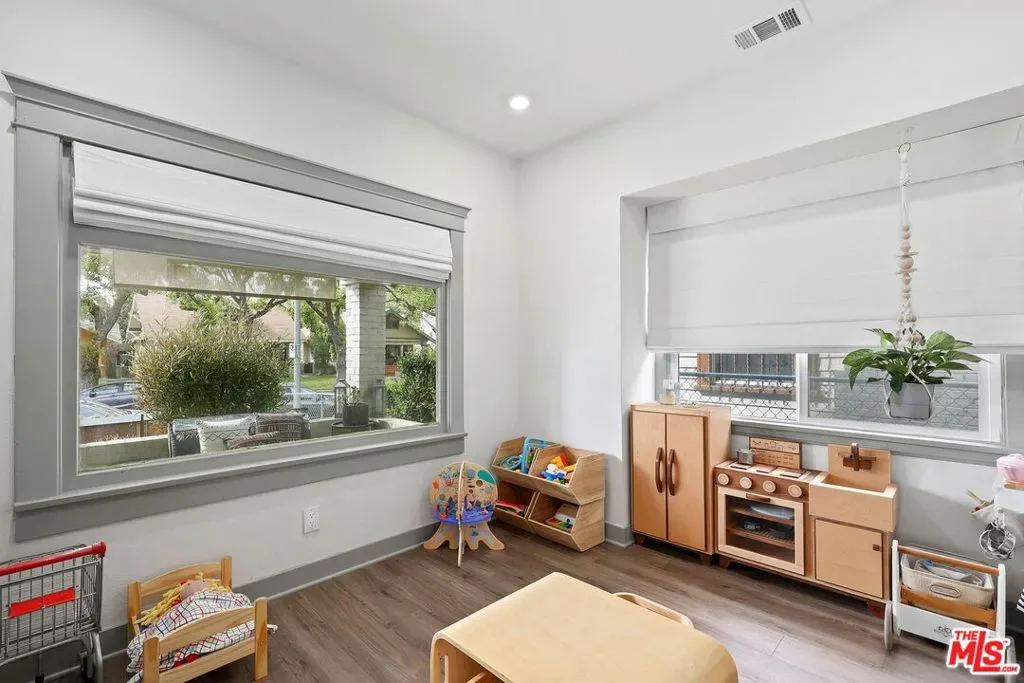 Nestled among a row of classic Craftsman homes, 3878 S Harvard offers a beautifully updated take on this timeless architectural style. Fully remodeled in 2019, the home preserves its original charm with hallmark details including a spacious front porch, substantial entry door, coffered ceilings, wainscoting, built-ins, and ornate wood-framed windows. Off the living room is the front bedroom or office, with great afternoon light from the West facing window. Two more bedrooms are steps from the dining room, one with an en suite bathroom. The hall bath has dual sinks and separates the bedrooms so they are even more private. The kitchen has plenty of storage, updated stainless steel appliances, and a window over the sink. An office/bonus room stands between the kitchen and the private back bedroom, also with an en-suite bathroom. The laundry is down the hall before you get to the attached garage. There is even a basement for additional storage and SOLAR for a padded electric bill! There is a gate off the back alley to get to the garage and the grassy backyard. Close to BMO Stadium, USC, the Expo Line, DTLA, and central to nearly the whole city, 3878 S Harvard is a tremendous find.