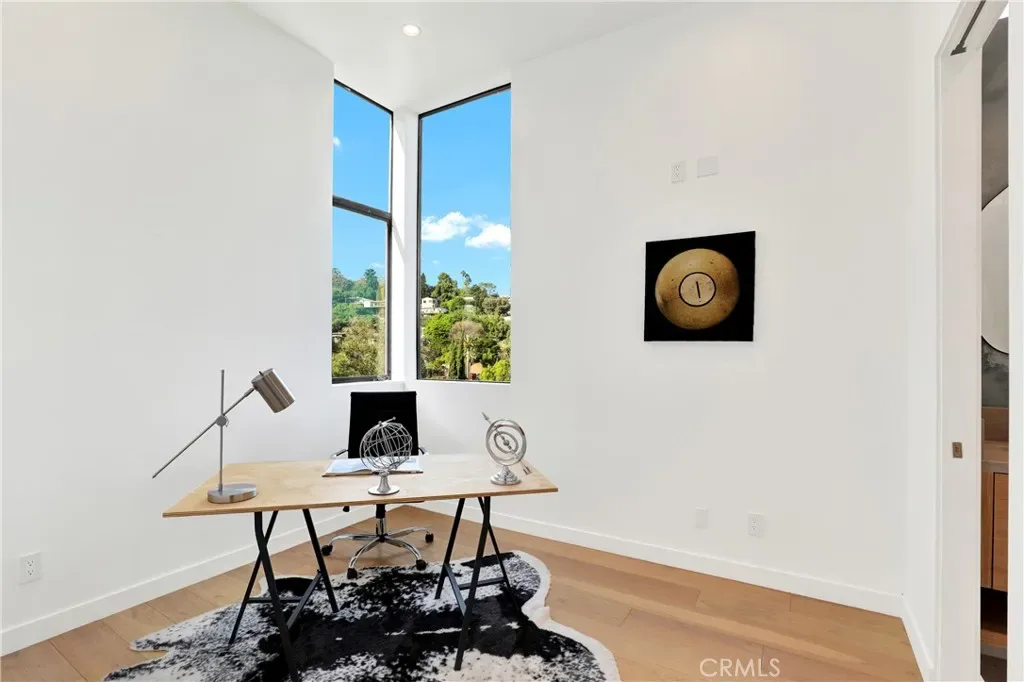 Welcome to this newly built Tri-Level contemporary showpiece nestled in the hills of Mt. Washington in Northeast Los Angeles—where modern design and elevated comfort come together in perfect harmony. Built in 2023, this architectural gem offers 2,428 square feet of thoughtfully designed living space, featuring three bedrooms and three bathrooms. The impressive primary suite serves as a private retreat, complete with a spacious walk-in closet and a spa-inspired en-suite bathroom. A skylight above the shower creates a distinctive bathing experience, allowing natural light—and views of the sun, moon, and stars—to transform everyday routines into moments of quiet luxury. As you transition from the street level two-car garage ascend to the main living level, where the heart of the home unfolds in a gallery-like setting that balances modern sophistication with warmth and livability. The showcase living room offers high ceilings, expansive walls ideal for your art collection, while abundant windows fill the space with natural light that flows seamlessly into the open kitchen and dining areas. The kitchen is a striking blend of form and function, defined by clean lines and a minimalist aesthetic that complements the home’s contemporary architecture. A generously sized island anchors the space, providing ample room for meal preparation, casual dining, and entertaining guests. Throughout the home, thoughtful material transitions add depth and character. The lower level showcases sleek polished concrete floors that emphasize modern simplicity and durability, while the upper level introduces warm wood flooring that adds an organic touch. These textures continue outward, connecting the home to its private outdoor spaces designed for relaxation and entertaining. Whether hosting gatherings or enjoying peaceful moments outdoors, the setting offers both privacy and tranquility. Mt. Washington is beloved for its scenic hills, welcoming cyclists, runners, hikers, and dog owners alike. Explore nearby Elyria Canyon Park or visit the Self-Realization Fellowship International Headquarters to experience more of the natural beauty that defines the neighborhood. While surrounded by nature, the home remains just minutes from Downtown Los Angeles and Highland Park, where an array of cafés, restaurants, and local favorites await.