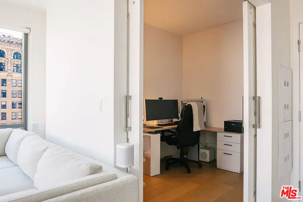 Rare corner unit with incredible south-facing views in Perla on Broadway. This 1-bedroom + den condo sits inside one of DTLA’s newest architectural standouts and offers a clean, modern space that feels both elevated and effortless.Inside, the layout is open and airy, with hardwood floors, oversized windows, and city views that flood the space with natural light throughout the day. The flexible den works perfectly as a home office, creative studio, or guest space. The kitchen is dialed in with Bertazzoni appliances, sleek cabinetry, and a streamlined design that makes cooking and entertaining feel easy.Life at Perla on Broadway is all about the amenities. Residents enjoy 49,000 square feet of thoughtfully designed shared spaces, including a rooftop pool, fitness centers, lounges, and a 36th-floor observation deck with sweeping skyline views. The building also offers 24-hour security, concierge service, and low HOA dues that cover water, trash, and gas.The sale includes a designated EV parking space, a rare and valuable perk in the heart of Downtown.Right in the heart of DTLA’s Historic Broadway corridor, walk to Grand Central Market, The Last Bookstore, Blue Bottle Coffee, Go Get Em Tiger, the Bradbury Building, Angels Flight, and The Broad, with restaurants, wine bars, galleries, and historic theaters just outside your door.