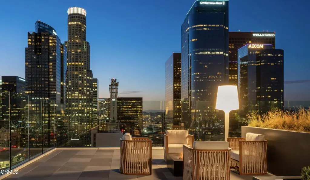 At approximately 907 square feet, this residence is framed by floor-to-ceiling glass that pulls the skyline into both the living room and bedroom delivering light, scale, and a constant connection to the city.And unlike many in this category, the layout is honest.A true, defined living room–separate from the bedroom–creates a natural rhythm between living and rest.The kitchen is refined and purposeful.Polished quartz countertops, porcelain tile backsplash, and a fully integrated Bertazzoni appliance suite chosen for both intention and design.The bathroom carries that same clarity.Designer tile, warm wood cabinetry, an illuminated mirrored medicine cabinet, polished chrome Kohler fixtures, and a soaking tub.Positioned in the center of Downtown, you’re moments from Grand Central Market, LA Live, Crypto.com Arena, cultural destinations such as Disney Concert Hall, The Broad Museum, Moca Museum, and a number of food and drink locations that continue to shape the city’s energy.But what elevates this offering is the building itself.Over 44,000 square feet of amenities designed to extend daily living–without excess, without compromise.An attended lobby that sets the tone.A light-filled fitness studio and yoga space.Library lounge, workspaces, and private meeting rooms. A resident theater.The pool terrace offers a layered experience spaces for hosting, dining, or stepping away from the pace of the city, complete with a chef’s kitchen, private dining room, and wine tasting room.Additional features include:One assigned parking spaceIn-unit washer and dryerRoller shades throughoutEV charging availabilityBike storage and secure accessPackage handling servicesFor a discerning buyer, Perla this about checking boxes, it’s about choosing a space that feels resolved, well considered, and positioned exactly where it should be.