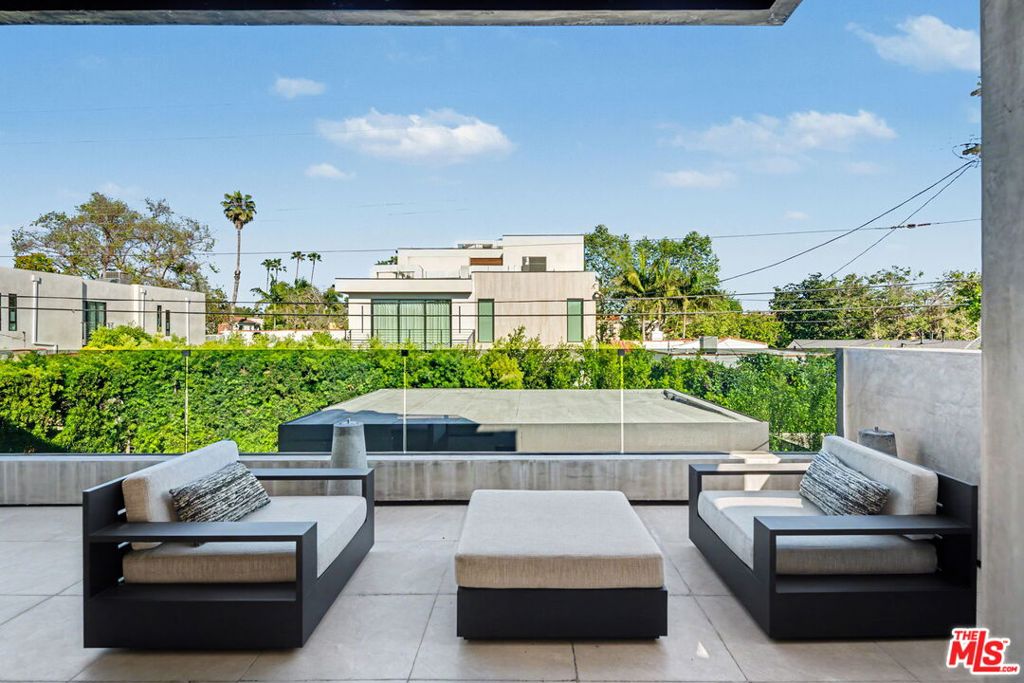 Newly built, gated architectural home with an elevator and approximately 2,000 sq ft of outdoor space, including a professionally designed rooftop deck with a fire pit and views of the Hollywood Hills. Conveniently located near Beverly Blvd, Melrose Ave, and Santa Monica Blvd. and situated between the Grove and the Beverly Center near West Hollywood. The home features an open floor plan with large Fleetwood sliding doors that connect the main living areas to multiple balconies and decks. The kitchen is equipped with top-of-the-line Miele appliances, including a Miele refrigerator and gas stove, along with a large center island that opens to the living and dining areas. The backyard includes a pool and hot tub with water features, cabana, a fireplace, and space for outdoor entertaining. The primary suite offers a spacious walk-in closet, dual shower, spa-style bath, and two private balconies including an outdoor fireplace. Additional features include a home theater, gym, recreation area with wet bar, smart home system, two-car garage with EV charger, and additional gated parking. Rent includes weekly pool service, weekly housekeeping, bi-weekly gardening, and all TVs. Property will be delivered unfurnished.
