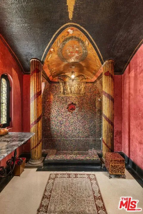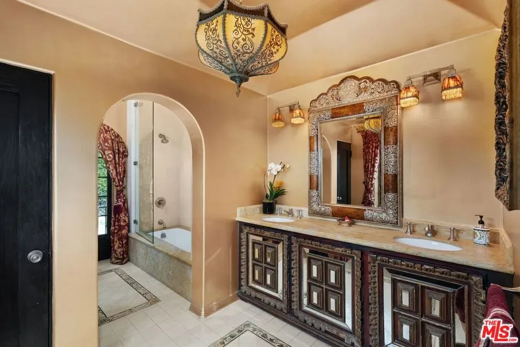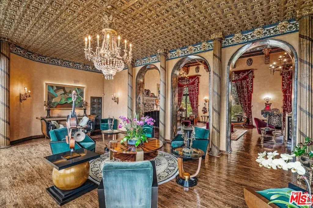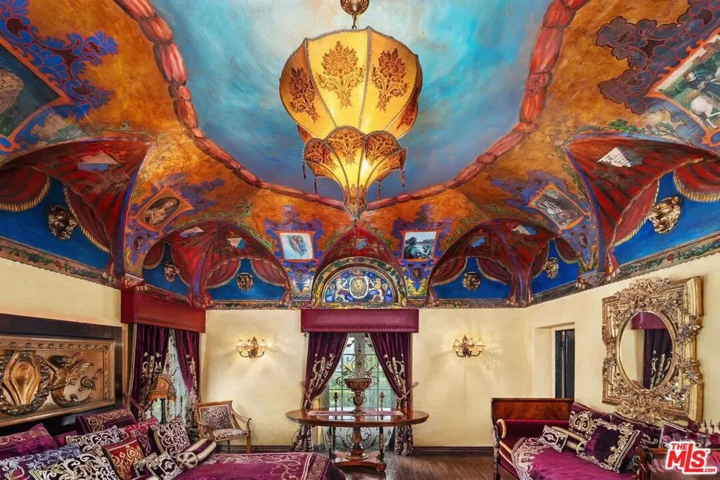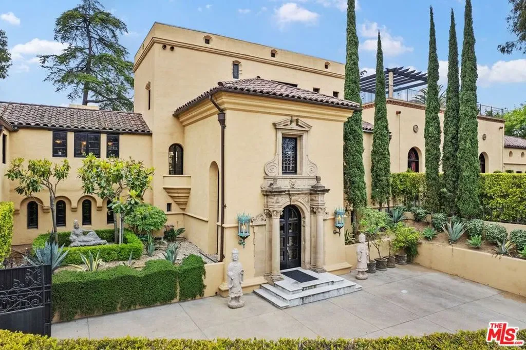 Introducing The Cedars, one of the most architecturally significant and emotionally resonant estates in Los Angeles, a once in a generation offering that transcends traditional real estate and enters the realm of art, history, and legacy ownership. Set high in the historic hills of Los Feliz, The Cedars is an extraordinary Old Hollywood estate originally conceived in the 1920s by acclaimed French film director Maurice Tourneur, a pioneer of early cinema whose vision helped shape Hollywood’s golden age. Inspired by the grandeur and romance of the Duke of Alba’s villa in Spain, this monumental residence was designed as a private sanctuary for artists, visionaries, and cultural icons. Today, it stands as one of the most distinctive and recognizable estates in Los Angeles. Lovingly and meticulously restored over a three year period by legendary fashion designer Sue Wong, The Cedars has been revived with extraordinary reverence for its original spirit while elevating it to museum quality standards rarely seen in residential property. Every detail was approached as an act of preservation, artistry, and storytelling, guided by Wong’s deep understanding of historical design, craftsmanship, and theatrical beauty.From the moment one arrives at the gated motor court, the estate announces itself as something truly special. The commanding facade, monumental arched entry, sculptural stonework, and dramatic proportions immediately evoke the romance of a European villa transported to the heart of Los Angeles. Mature landscaping, terraces, fountains, and magical gardens surround the property, creating a sense of privacy and timeless serenity.Inside, The Cedars unfolds as a richly layered visual and emotional experience. The interiors are defined by soaring ceilings, hand gilded bas relief ornamentation, frescoed arches, carved stone details, stained glass windows, dramatic staircases, and ironwork crafted by master artisans. Gilded ceilings shimmer with old world splendor. Walls are adorned with museum worthy art and period elements sourced from across Europe and North Africa. Each space feels cinematic, intimate, and grand all at once.The main residence is complemented by a beautifully appointed detached guest house, ideal for guests, creatives, or private retreat use. Throughout the estate, rooms flow seamlessly into one another while maintaining distinct character and purpose, offering endless opportunities for entertaining, creative expression, and quiet reflection.The Cedars is legendary not only for its architecture but for the extraordinary lives lived within its walls. Over the decades, it has been home to and frequented by some of the most influential figures in entertainment and culture, including Norma Talmadge, Howard Hughes, Marilyn Monroe, Jimi Hendrix, Johnny Depp, and countless other artists and musicians. It is widely believed that Hendrix composed portions of Purple Haze here, and that the estate served as a gathering place for icons such as Bob Dylan and The Rolling Stones. Few homes in Los Angeles can claim such authentic creative provenance.Sue Wong’s stewardship elevated The Cedars to its current status as a living work of art. European artisans were brought in to restore original elements and recreate lost details using traditional methods. Rare antiques were sourced globally to harmonize with the estate’s architecture, blending Baroque, Empire, French Art Deco, Moroccan, Andalusian, and Old Hollywood influences into a cohesive and breathtaking whole.Today, The Cedars is not simply a residence. It is a landmark estate, a cultural artifact, and a deeply emotional property that resonates with those who value authenticity, beauty, and legacy. It offers sweeping views over Los Angeles, from city lights to distant horizons, while remaining moments from Griffith Park, the Observatory, and the cultural heartbeat of the city.This is a property for a buyer who understands that true luxury is not about duplication, but distinction