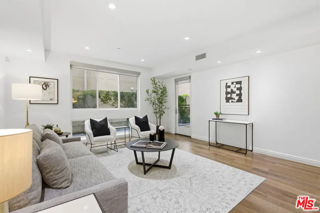 This contemporary two-bedroom, two-and-a-half-bath residence is located in one of Brentwood’s premier full-service buildings. The open living and dining area features wide-plank wood floors, modern finishes, and a guest powder room. The kitchen is equipped with high-end appliances and sleek cabinetry. Both bedrooms include en-suite baths, with the primary offering dual vanities and a walk-in closet. Additional features include in-unit laundry, secure two-car parking, and private storage. Building amenities include 24-hour concierge, fitness center, heated pool, outdoor lounge with fire pit, meditation garden, EV charging, and guest parking. Prime location near Brentwood Village, dining, shops, and parks