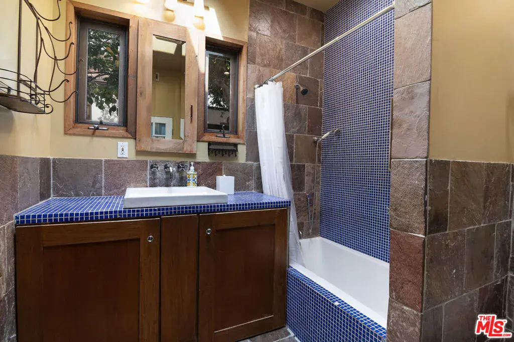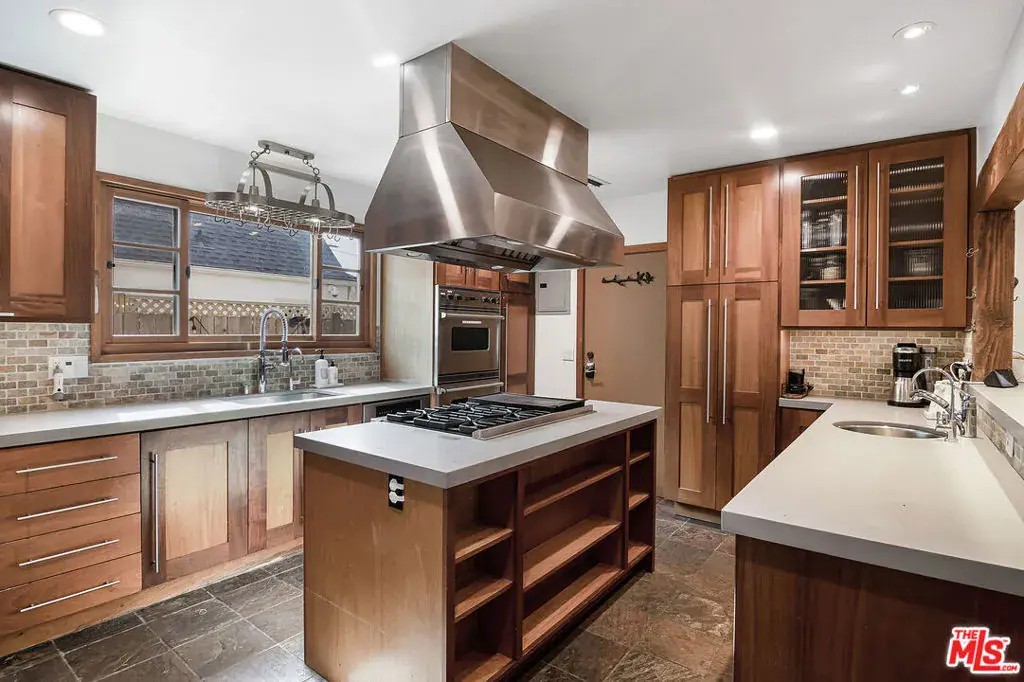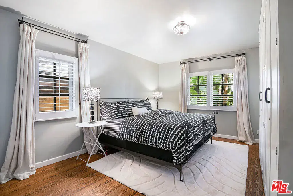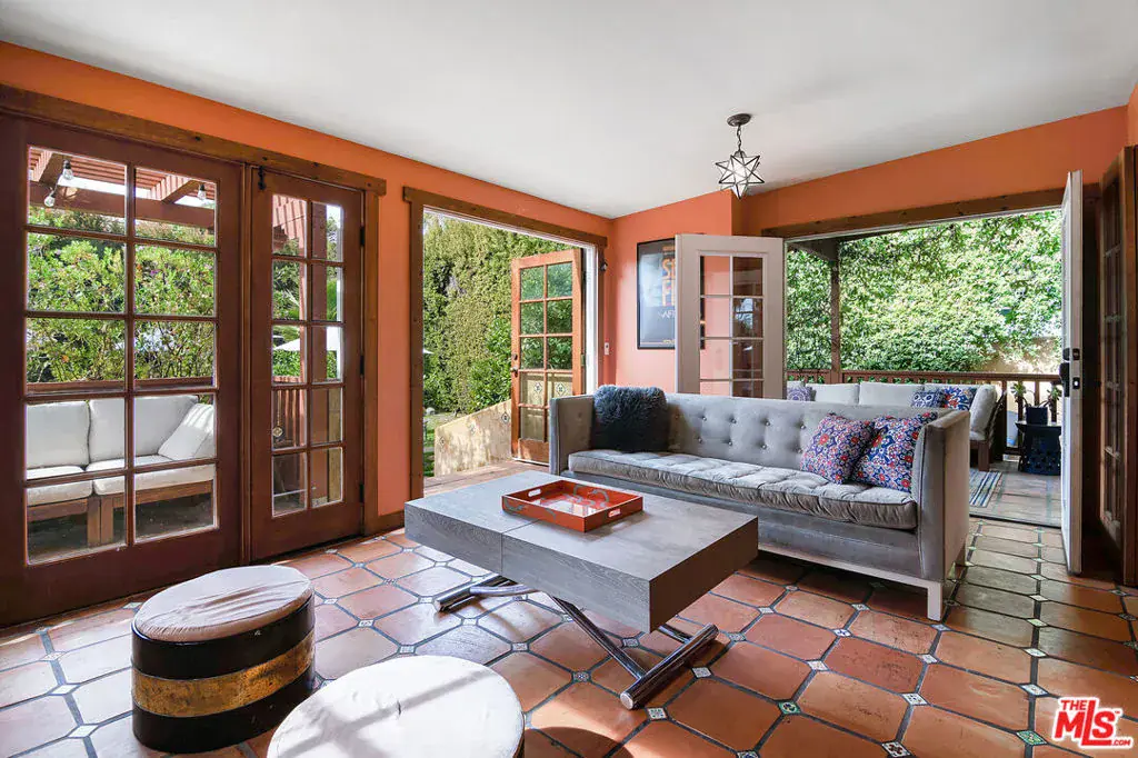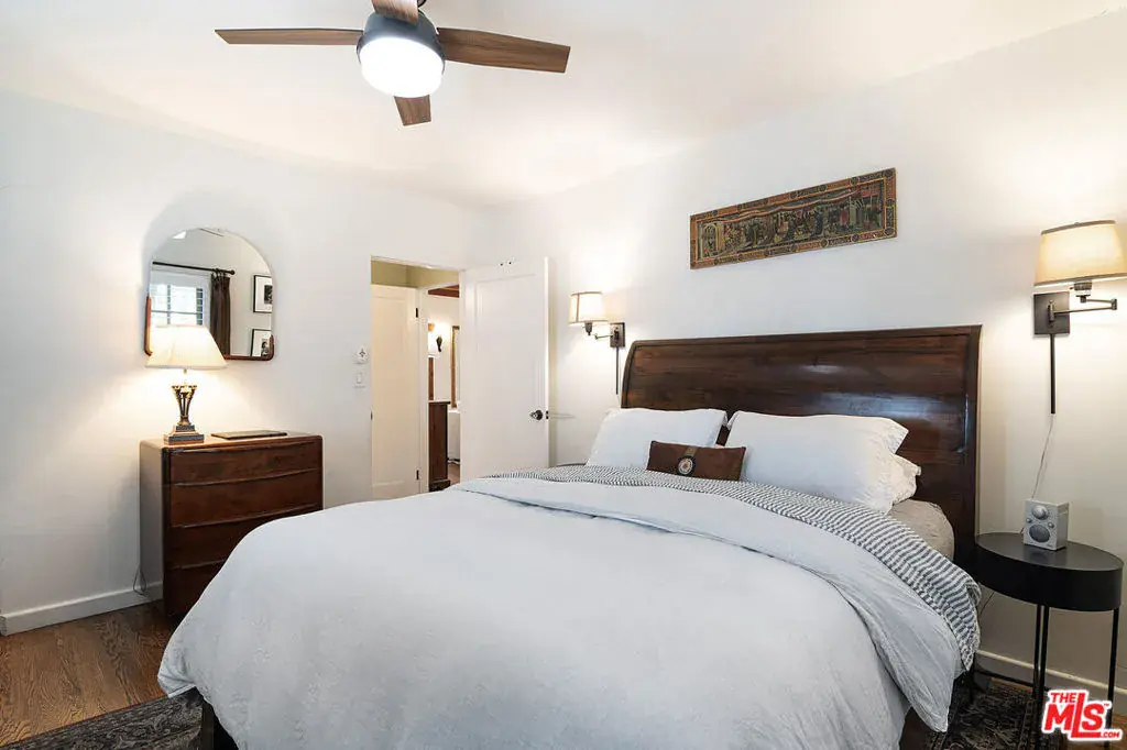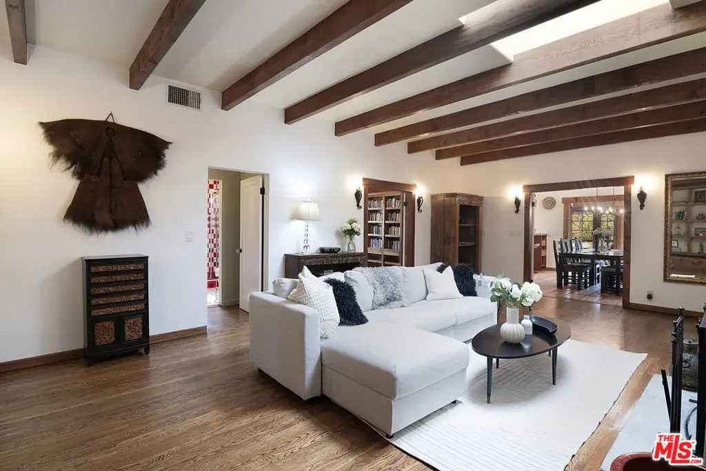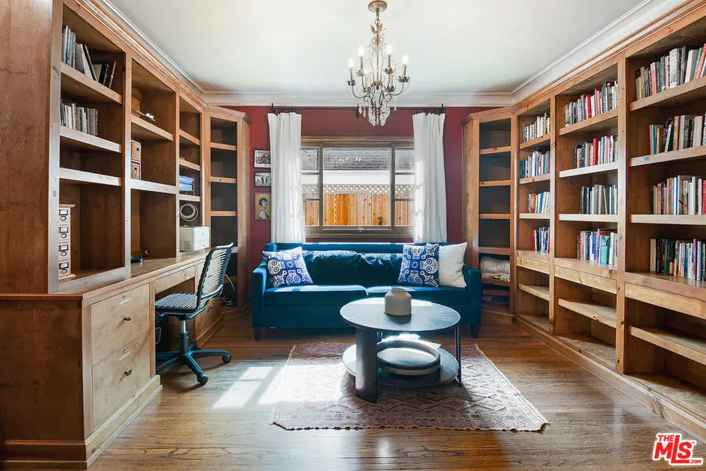 Single Story Mission Spanish Adobe Hancock Park Home with 3 beds, 3 baths and whimsical outdoor garden! Covered front porch and formal foyer open to living room with beamed high ceiling, fireplace, built ins. Library off the living room is lined with bookshelves, has a built-in desk area + wet bar with sink and beverage fridge, and is bathed in sunshine. Kitchen with center island + separate breakfast bar has Viking and Sub Zero appliances, tons of storage and countertop space. Laundry off the kitchen with a door to the yard. Primary bedroom is a suite and opens to a charming covered patio. 2 additional sunshine filled bedrooms with generous closet space + colorful baths with personality, 1 with a tub and 1 with a shower. Backyard has great space for al fresco dining in a private hedged garden with lush mature trees. Hardwood and tile floors, central HVAC. Amazing location close to restaurant row, Larchmont Village, tree-lined serene Hancock Park streets. Third Street School!