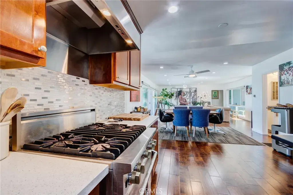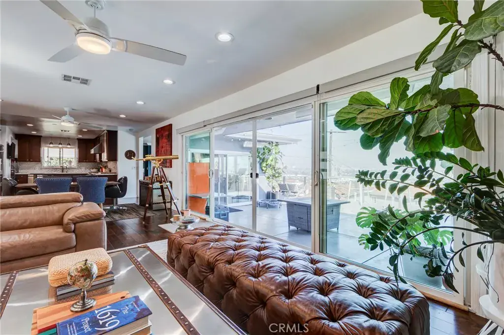 This beautifully appointed home sits on one of the most desirable streets in Baldwin Hills, offering sweeping panoramic city views, including the Hollywood Sign and iconic LA landmarks. Move-in ready and designed for comfort and style, this residence features a light-filled open floor plan, warm wood flooring, and an updated kitchen complete with stainless steel appliances and quartz countertops. Viking appliances stay with the home. A/C, doble deck, speakers thru out the house and also out in the deck, fireplace in patio area too.