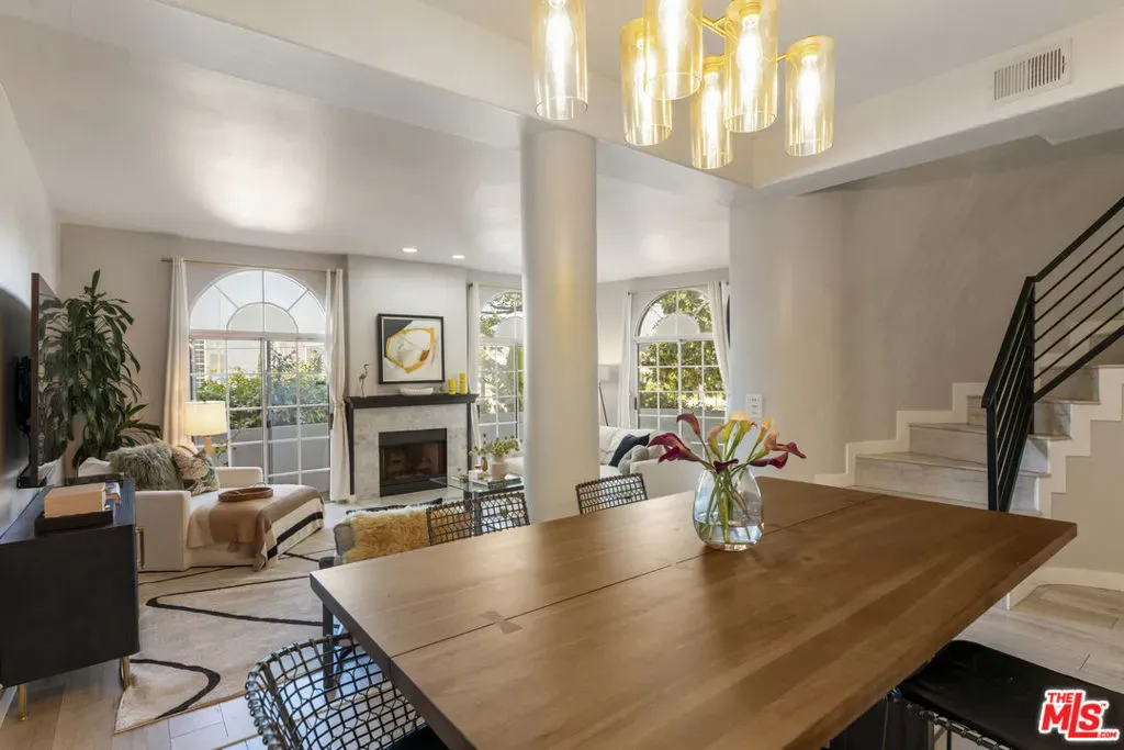 Set within a 16-unit boutique building, this fully renovated, two-level northwest corner 3bd + 2.5-bath townhome, offers city light and mountain views extending toward the Hollywood Hills and Century City. Deco-inspired curves and details balance an urban sensibility with a warm, inviting feel in a central Miracle Mile location. Floor-to-ceiling arched windows bring in beautiful afternoon light, creating a bright and open feel throughout the home. The main level features a spacious step-down living room and a separate, generously sized dining area, along with a dedicated bar area just off the living room. The newly redone kitchen offers a clean, open, modern design, functional layout, and includes a wine fridge and stainless steal appliances. Upstairs, all three bedrooms provide comfort and flexibility. The primary suite includes ample closet space and a spa-like bath with dual vanities, soaking tub, and separate shower. Additional highlights include a dedicated in-unit laundry room, gated tandem parking, and a secure, well-maintained building with low HOA dues. Located in one of LA’s most vibrant neighborhoods, you’re just moments from LACMA, the Academy Museum, the evolving Miracle Mile corridor, The Grove, the Original Farmers Market, and a dynamic mix of cafes, restaurants, and shops.