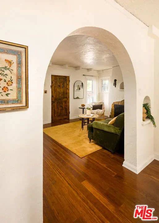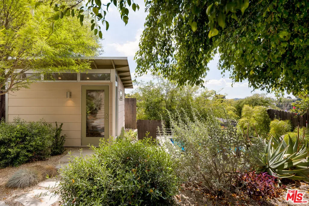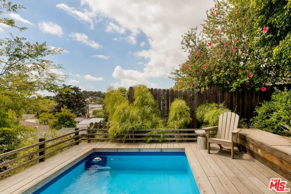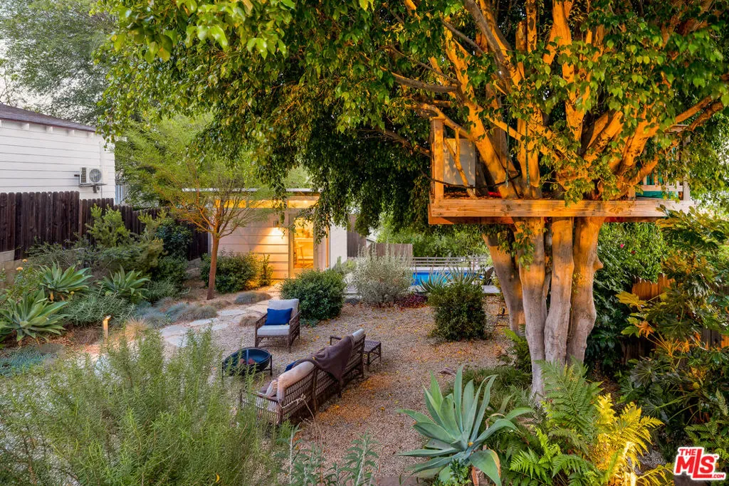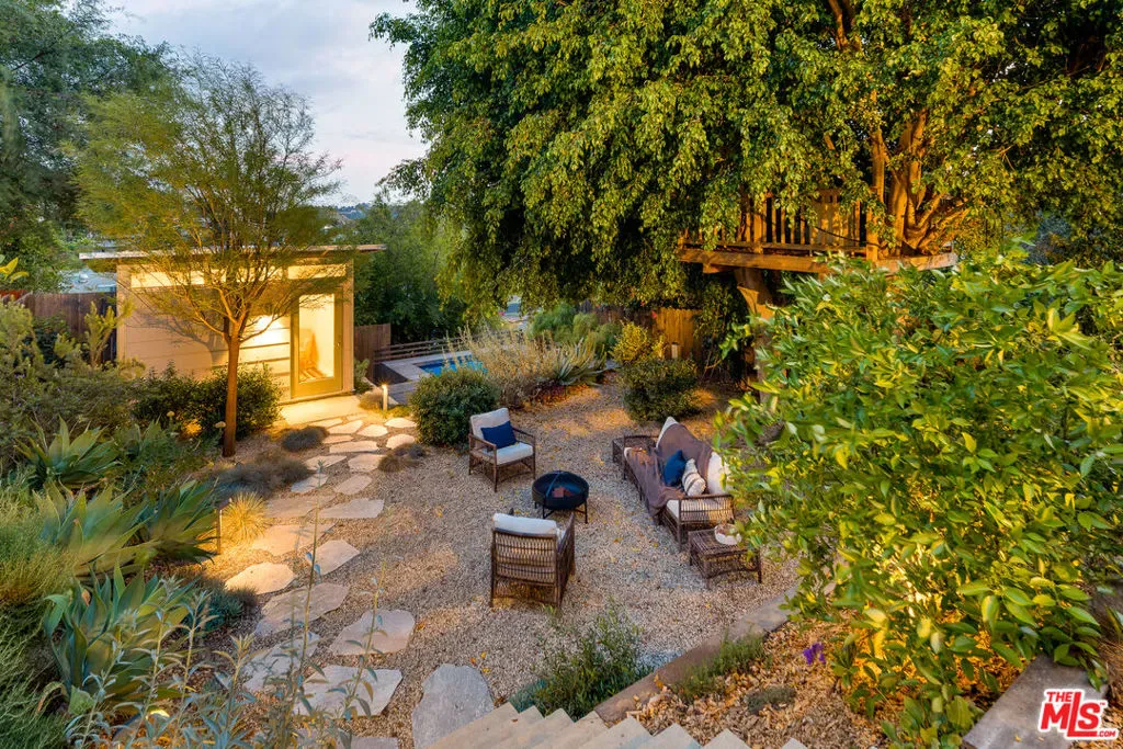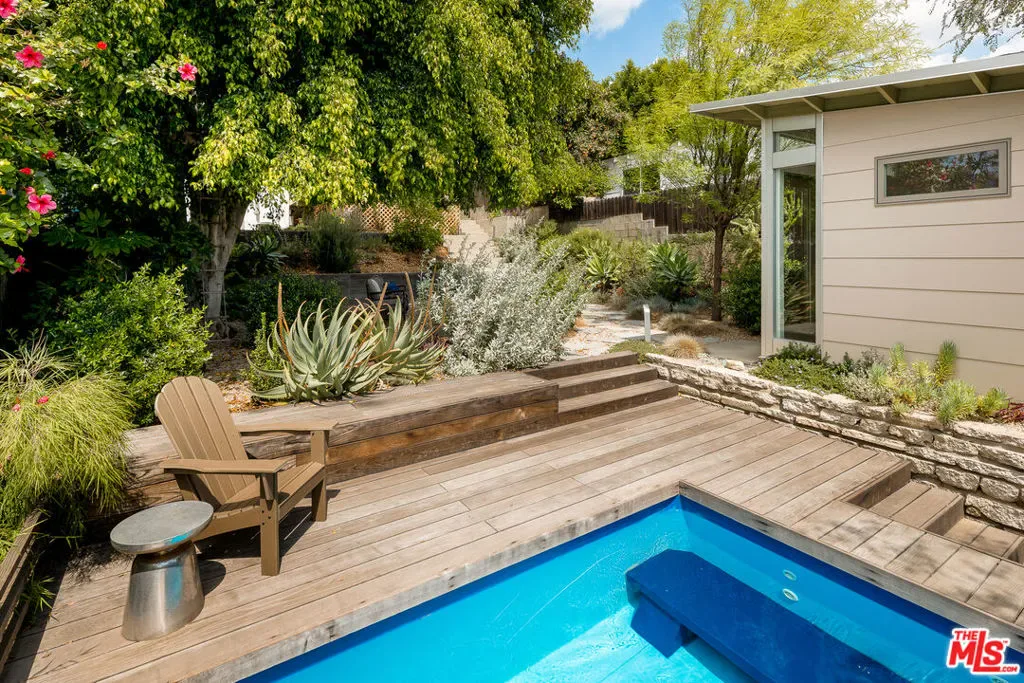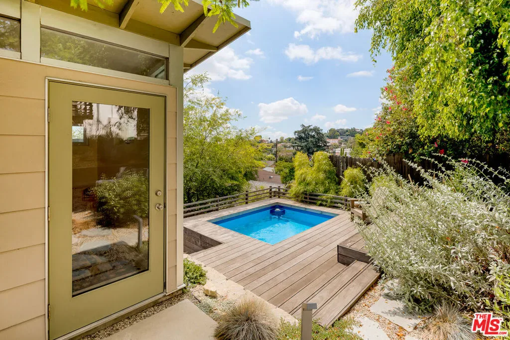 Set on a hillside above the street, this Spanish bungalow has the kind of bones that stop people mid-scroll. Original details, real proportions, a layout that flows like someone thought carefully about how a person actually moves through a home. In the kitchen, copper countertops and copper sink, patina the way only the real thing does warm, lived-in, and better with age. The fireplace is dressed in original Batchelder-esque Arroyo tiles: relief-molded, richly glazed, the handcrafted earthen work that defines the best Arroyo interiors. Two bedrooms, one bath, and every inch earns its place. The rooms connect easily, light moves through the day, and there’s a pull toward the back of the house that’s hard to explain until you step outside and get it immediately. The deck is where the day starts and ends-morning coffee, dinner in breezy air, drinks with friends after the heat breaks. Beyond it, the backyard unfolds in terraced garden spaces threaded by winding paths, with tucked-away corners that reward a wander. A plunge pool sits tucked into the landscape like it was always there. A treehouse that earns genuine affection. Nestled into the greenery, a detached studio that’s quiet enough to actually use.A one care garage at street level, that holds more than appears. A Spanish with real soul and a backyard that belongs to a much larger life than the square footage suggests.