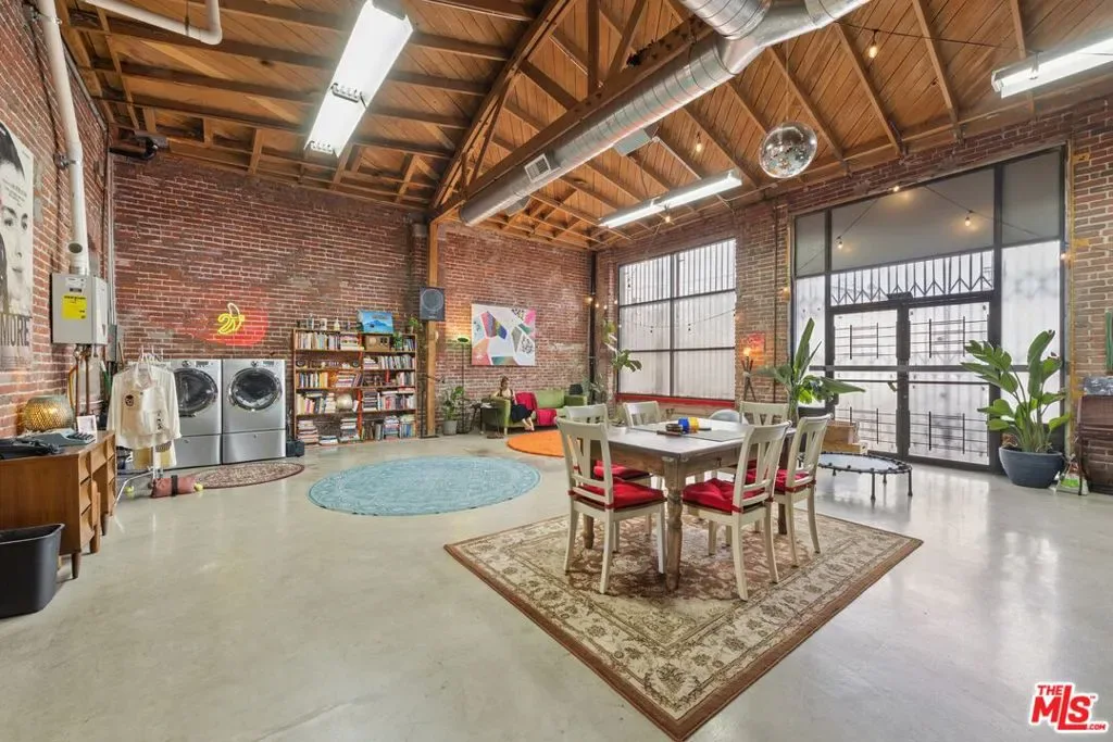 Unique live/work structure with open style floor plan. High ceilings, exposed beams, concrete floors, brick wall details, kitchenette, 2 bedrooms/private offices, full bathroom and extra storage spaces including detached storage container in parking area. High power with 100 AMP 3-PHASE 120/208V. Private and gated lot with on- site parking for up to 6 cars. Can be used for residential or office purposes. Buyer to verify.