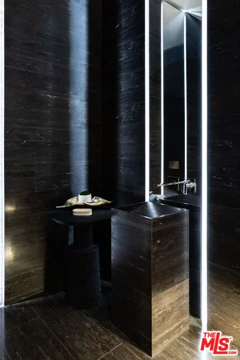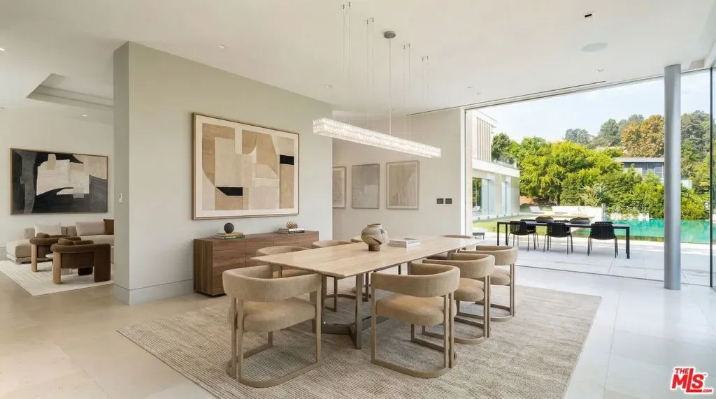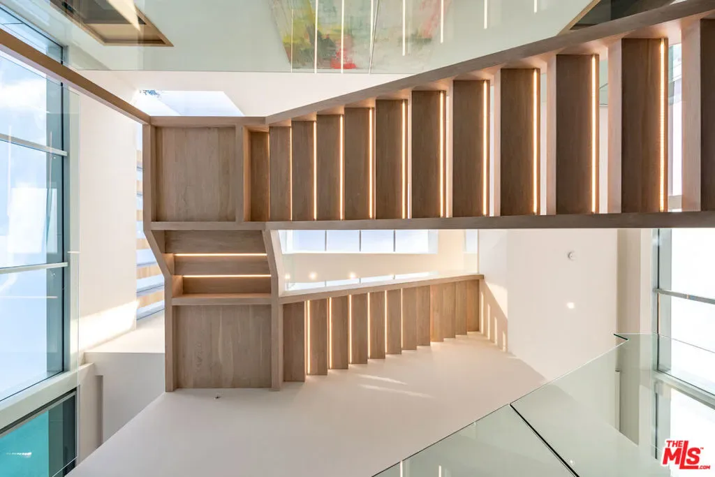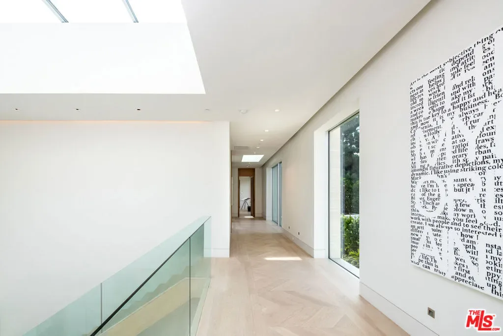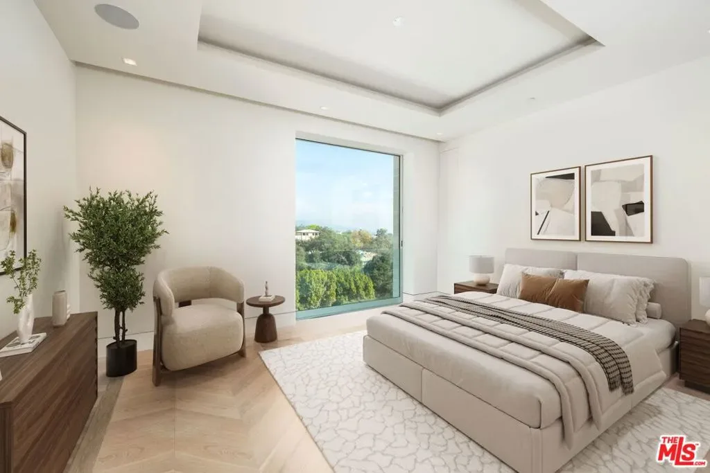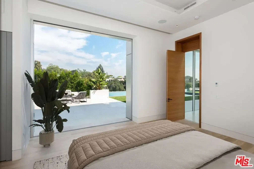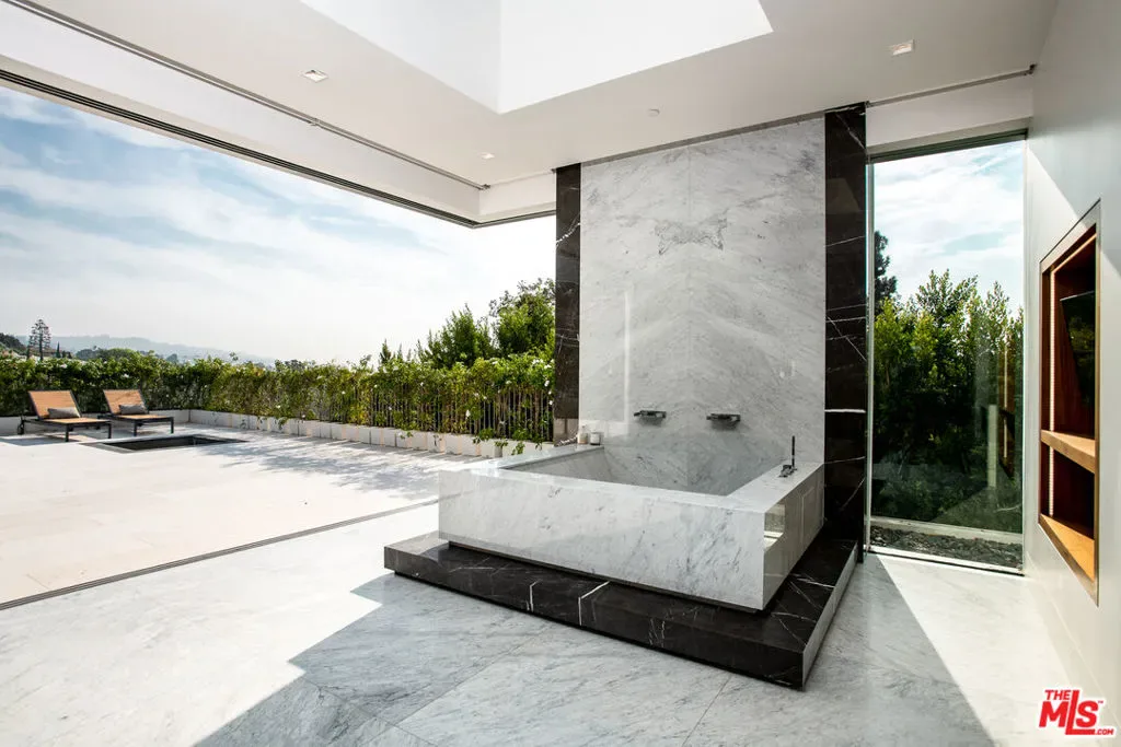 Set on nearly one acre in prime lower Bel Air, 642 Perugia Way is an architectural tour de force conceived by British firm Quinn Architects and stands as one of the most remarkable private estates to come to market, where architecture, jetliner views, and natural light shape every space. Sited at the end of a cul-de-sac on one of Bel Air’s most coveted streets with its own dedicated security, the property offers a level of discretion rarely available at any price. Fully gated, arrival unfolds through a sleek stone motor court with 4-car garage introducing the home’s craftsmanship and sculptural presence. Inside, a floating staircase anchors the entry and motorized Fleetwood glass walls open entire elevations to travertine terraces beyond. Expansive walls and exquisite light quality create gallery-like settings ideal for showcasing art across all three levels. Smart home technology controls lighting, climate, security, and audiovisual. The main level is built for entertaining featuring a chef’s kitchen with Miele appliances supported by a fully outfitted butler’s kitchen, allowing large gatherings to unfold effortlessly. Living and dining areas open to the backyard, where a sunken firepit gives way to the estate’s centerpiece: a 65-foot infinity-edge pool with views over the Bel-Air Country Club and surrounding hills. Garden terraces, clipped hedgerows, and specimen plantings wrap the grounds in total privacy while softening the residence into the natural hillside. The primary suite is in a class entirely its own occupying a generous private wing on the upper level, it encompasses a bedroom of hotel-like grandeur. The spa bath is framed in travertine and Carrara marble, with a soaking tub open to a private patio featuring a jacuzzi and firepit. Dual dressing rooms are fitted with bespoke millwork and glass display islands. The lower level is dedicated to entertainment and wellness featuring a state-of-the-art gym, cinema-grade movie theatre, bar and lounge, and a temperature-controlled glass-enclosed wine cellar. 642 Perugia presents one of Bel Air’s most significant contemporary estates.