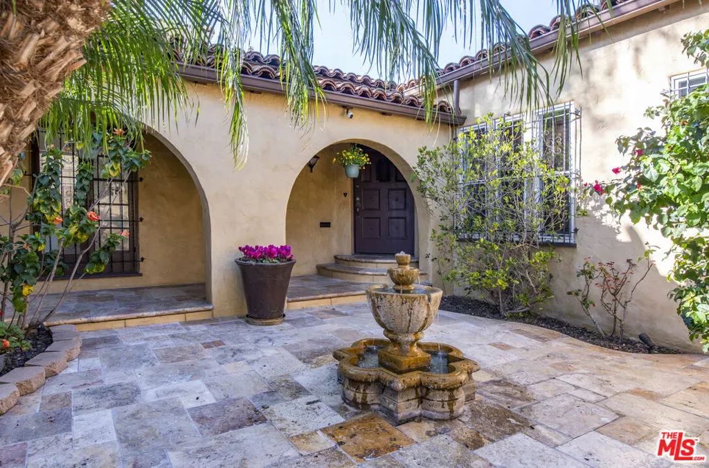 Set on a leafy street in Beverly Grove, this lovingly maintained 1930s Spanish Colonial Revival is ready for its next owner. A gated front courtyard with a fountain introduces a sense of privacy and sanctuary that carries through the interiors. Living spaces have been carefully preserved and thoughtfully refreshed over the years through period details such as barrel-vaulted ceilings, wood beams, arched doorways, inlaid wood and terracotta-style tile floors, plaster walls, and authentic doors and hardware. A welcoming foyer marks the arrival and opens to an elegant sunken living room, anchored by a Batchelder-style fireplace, a large picture window, and French doors opening to the courtyard and serene sounds of the fountain. A formal dining room adjoins the kitchen and breakfast room, where a classic galley layout has been updated with wood cabinetry, quartz countertops, and stainless-steel appliances. An enclosed sunroom/den with a distinctive arched skylight offers flexible use as a home office or quiet retreat. Three bedrooms include a spacious primary with a walk-in cedar closet, complemented by two baths with intricate Art Deco tilework. The property is primed for entertaining both indoors and out, taking guests from the courtyard to the private rear yard where an entertainer’s patio surrounded by lush greenery awaits. Additional features include a laundry room, a detached automatic two-car garage, and central AC. All of this is set within one of L.A.’s most walkable and sought-after neighborhoods, moments from Cedars-Sinai, the Beverly Center, and the boutiques and cafs along Robertson and Beverly Boulevardyet removed enough to feel a world away. A rare opportunity to own a move-in-ready, beautifully preserved piece of Los Angeles architectural history in a location that places you at the center of it all.
