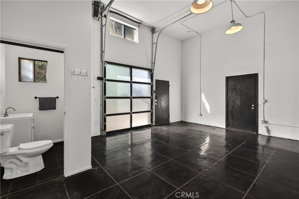 The front unit features a commercial-zoned warehouse/retail space, ideal for a variety of business uses including showroom, studio, or creative workspace.