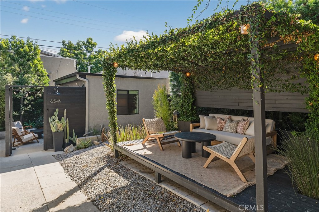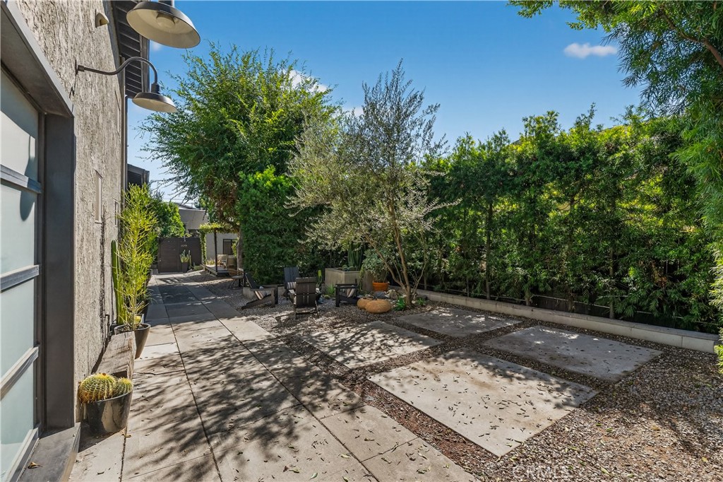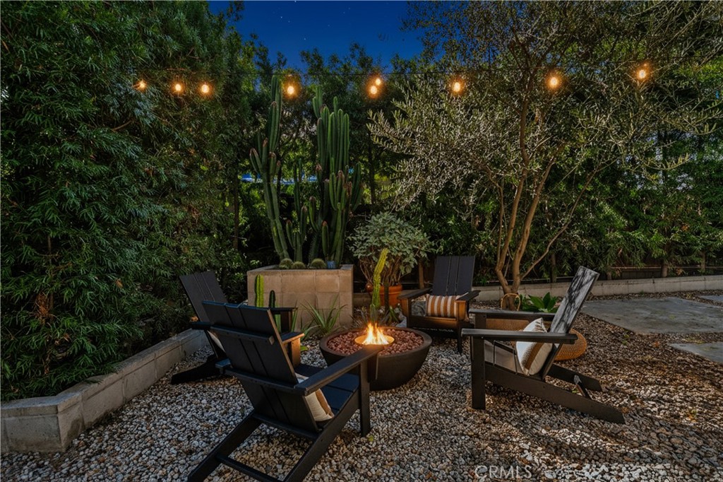 The property is enhanced by a thoughtfully designed side yard with indoor-outdoor flow, featuring an outdoor dining area, fireplace, and pergola creating a private and functional outdoor living space.