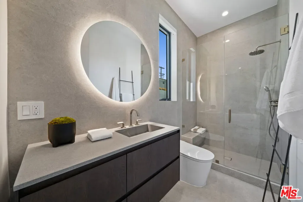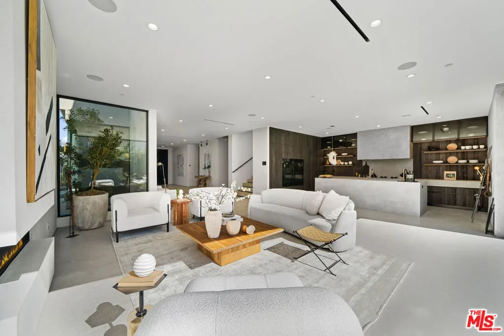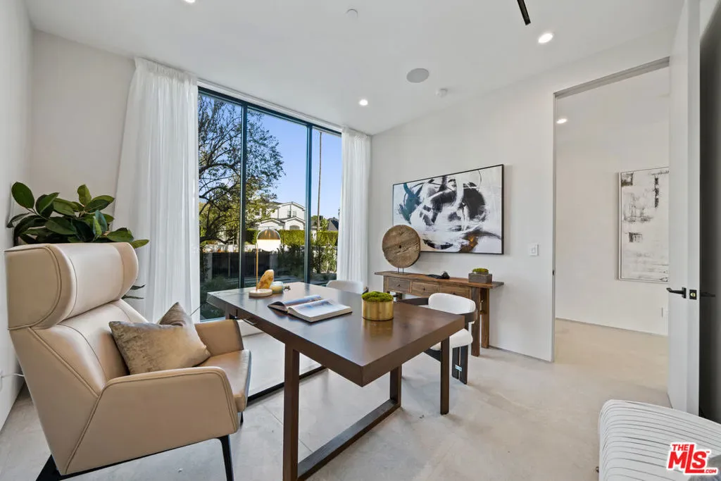 Elegantly designed, newly constructed 4 bedroom 5 bathroom architectural estate with bonus office situated in prime Beverly Grove showcasing modern technologies with an exceptional curated finish. Filled with an abundance of natural light, the open floorplan concept is complemented with its warm organic Italian stone and wide plank oak floors, high ceilings, and walls of sliding glass doors that flow seamlessly into your private outdoor oasis. The beautiful master retreat redefines opulence with its showroom walk-in closet, spacious balcony and a spa-inspired master bathroom. The exceptional chef’s kitchen is equipped with Miele appliances, custom reclaimed wood cabinetry, and a large center island dressed in imported Italian porcelain. This home comes complete with a pool, spa, cabana, fireplace, and a state-of-the-art smart home security. Extremely desirable Beverly Grove location within walking distance to The Grove, West 3rd St, The Beverly Center, Cedars Sinai and within minutes to Beverly Hills, Century City, and Downtown L.A.