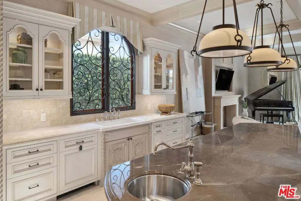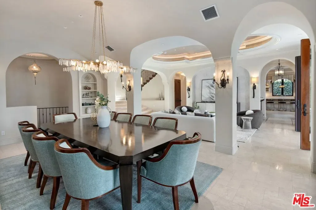 Nestled on a coveted 16,008 sq. ft. lot in one of North Kentwood’s most desirable neighborhoods, this extraordinary Mediterranean estate blends timeless elegance with modern luxury. Offering 8,733 sq. ft. of meticulously crafted living space and a 1,166 sq. ft casita, this private retreat showcases unparalleled craftsmanship and high-end finishes, including Italian marble, limestone, and natural woods, in a thoughtfully designed layout that exudes sophistication and warmth. The main residence features five bedrooms, seven bathrooms, and two half baths, complemented by a two-bedroom, one-bath guest house an ideal haven for multi-generational living or stylish guest accommodations. Both homes are fully equipped smart homes, powered by advanced Crestron technology, allowing seamless control of lighting, climate, security, and entertainment systems. Constructed with flame-retardant lumber, a robust water-softening and filtration system, solar panels, and a hard-wired security system with geo-fencing, the estate offers state-of-the-art innovation with enduring quality. Enter through the grand foyer, where soaring ceilings and a sweeping curved double staircase immediately set a tone of opulence. The open yet well-defined floor plan flows effortlessly between formal and informal living spaces. A stately formal living room with a gas fireplace and mahogany doors opens to the lush backyard, while the sophisticated formal dining room offers a perfect setting for elegant gatherings. The family room, featuring a striking coffered ceiling, pocket doors, and an outdoor fireplace, invites relaxation and seamlessly merges indoor and outdoor living. The heart of the home is an expansive kitchen equipped with high-end appliances, a La Cornue stove, a spacious marble island, and a separate chef’s kitchen for effortless entertaining. A full-service wet bar enhances the home’s hosting capabilities. The main level also includes a private office with coffered ceilings and French doors opening to the front loggia and garden, a hand-carved limestone staircase spiraling around a three-story touret with niche lighting, an adjacent powder room, and an elevator for added convenience. Designed for both grand entertaining and serene retreats, the backyard is a true sanctuary, featuring a large salt-water pool and spa, two outdoor fireplaces, and a tranquil fountain surrounded by lush, mature landscaping that offers exceptional privacy. Upstairs, the primary suite is a luxurious escape, complete with a private balcony offering sweeping views, a cozy fireplace, a spa-inspired ensuite bath with heated floors, a soaking tub, a separate shower, dual vanities, and a refrigerated bar area. Expansive dual closets provide impeccable storage. Four additional en-suite bedrooms ensure comfort and privacy for family and guests, while a conveniently located laundry room adds everyday ease. A first-floor en-suite bedroom, with a refrigerated minibar and French doors to the garden, offers flexibility and accessibility. Entertainment and lifestyle amenities abound, including a temperature-controlled wine cellar for collectors, a private state-of-the-art movie theater with custom seating, an adjacent full-service wet bar and snack center with microwave and refrigerated drawers, a full salon with hair and nail stations, a dedicated gift wrapping, hobby, and homework center, plus a large gym for wellness enthusiasts. The separate guest house offers fully independent living with a custom kitchen, washer/dryer, two large bedrooms, a full bath, and a separate outdoor pool bath, ensuring extended family or guests enjoy complete comfort and privacy. A four-car garage and a gated driveway provide secure parking for six or more vehicles, adding everyday practicality to the estate’s grand presence. This rare offering presents a unique opportunity to own an estate that flawlessly blends luxury, functionality, and exquisite design all within the vibrant heart of Westchester.