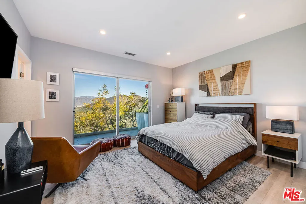Hollywood Hills Modern w/ Panoramic-View stretching from the Hollywood Sign to Griffith Observatory and the San Gabriel Mountains. This light-filled 4BD/4BA residence blends contemporary architecture with seamless indoor-outdoor living in one of the Hills’ most desirable locations. An expansive open-concept floor plan is framed by dramatic floor-to-ceiling glass, flooding the home with natural light and showcasing breathtaking vistas from multiple private view decks perfect for both relaxed everyday living and sophisticated entertaining. The chef’s kitchen is outfitted with premium Bertazzoni appliances, sleek custom cabinetry, and refined finishes that balance form and function. A versatile main-level bedroom offers the ideal space for guests, a home office, or creative studio. Two luxurious primary suites provide tranquil retreats, each featuring spa-inspired baths and generous proportions. The lower level features a dedicated gym and full bath, with direct access to expansive sundecks and an observation deck capturing spectacular city light and hillside views. Additional highlights include solar panels, dual-zone A/C, powered window shades, EV charging, a gated driveway and a two-car garage. Ideally located moments from Runyon Canyon, the Sunset Strip, and Studio City, this exceptional residence offers iconic views, modern design, and effortless indoor-outdoor living in the heart of the Hollywood Hills. Also available furnished.