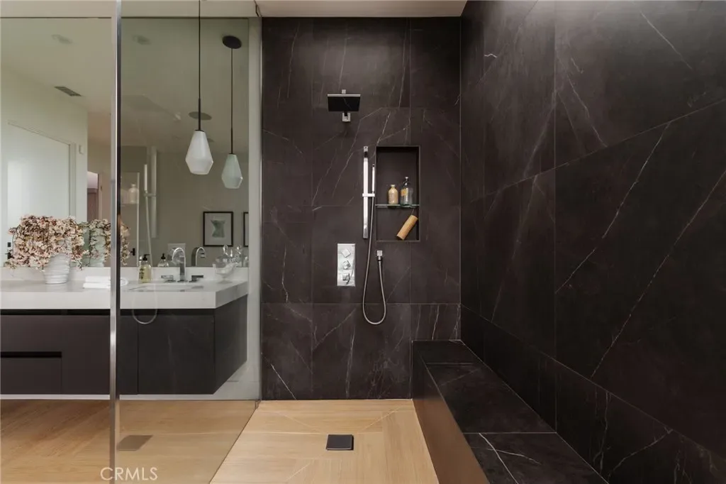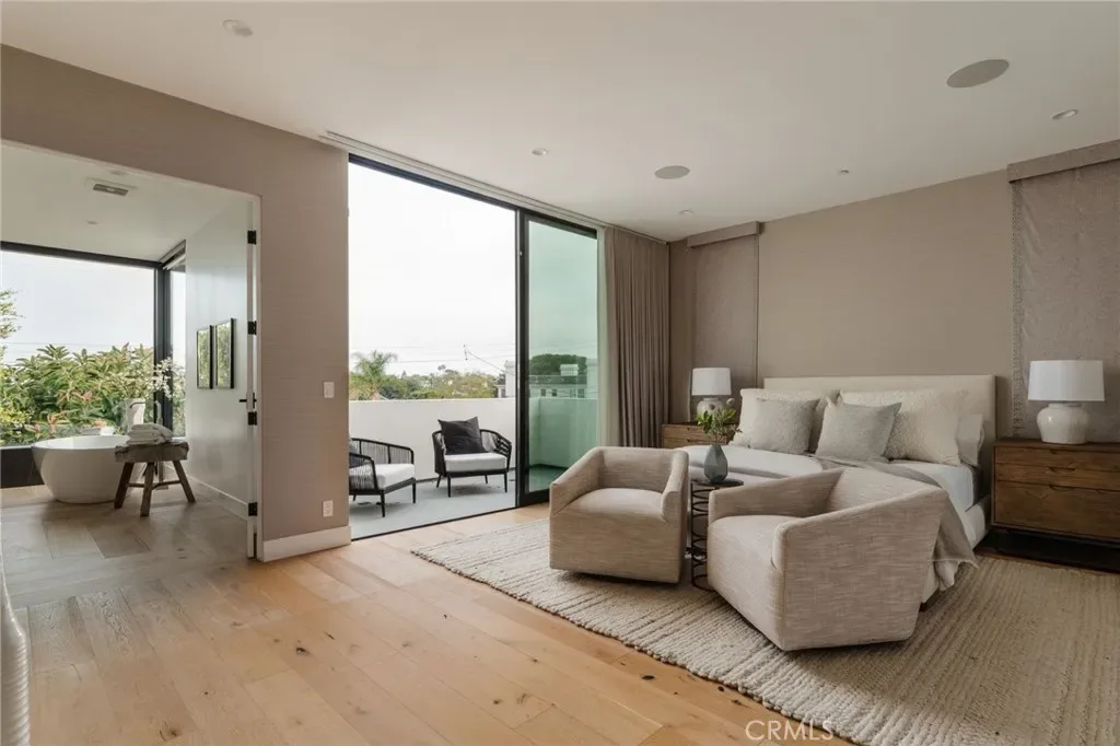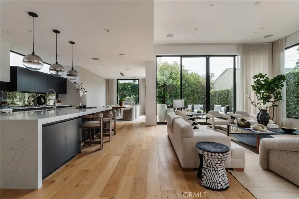 7200 Kentwood is a crowned jewel positioned in the coveted ‘North of 77th’ pocket of Westchester. This 2019 contemporary masterpiece sits at the peak of the Westchester market – one of LA’s most sought-after family neighborhoods – offering 5 bedrooms, 4.5 baths, and the ultimate indoor/outdoor living. Picture mornings where automated floor-to-ceiling drapes part to unveil 12-foot Western sliding doors opening to a redwood deck and lush backyard oasis, and evenings taking in jaw-dropping panoramic city views from the rooftop deck — complete with hot tub, BBQ, lounging, lighting, and a dumbwaiter. The gourmet kitchen features an 11-ft. waterfall island, custom cabinetry, and wet-bar with wine fridge, alongside a lavish dining room. The luxurious primary suite offers a fireplace, private balcony, and spa-like bath. A flex entryway bedroom with ensuite is perfect for a home office or guests. Skylights flood the home with natural light, while thoughtful details — laundry chute, multi-zone speakers, ample storage, solar panels, whole-house water softener system, impact-resistant anti-intrusion windows, automated security shutters, and camera hook-ups — perfectly balance intimate family living with an entertainer’s dream. Served by Kentwood Elementary, Wright Middle School STEAM Magnet, and Westchester Enriched Sciences Magnets High School.