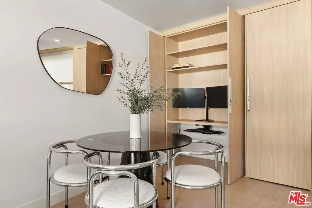 Sleek, modern condo with Hollywood Hills views in a full-service doorman building, moments away from Runyon Canyon. The unit features an open floorplan layout with wide plank hardwood floors, updated kitchen and 1.5 bathrooms, in-unit laundry and a private balcony. Franklin Towers residents enjoy amenities that include a pool, hot tub, sauna, gym and valet guest parking.The recent renovation was completed in 2024 with a thoughtfully designed kitchen with grain-matched cabinetry, porcelain slab waterfall counters, Roman clay ventilation hood and integrated Fisher & Paykel refrigerator. A built-in, low-profile workstation offers a convenient work-from-home solution, blending into the residence’s clean lines. The bedroom is appointed with two generous closets and a remodeled full bathroom with separate bathtub and glass-enclosed shower. Additional storage includes a hall closet and built-in cabinetry. An HVAC system installed in 2025 and a Nest thermostat ensure comfort year-round. Dedicated parking space with electric vehicle charging.
