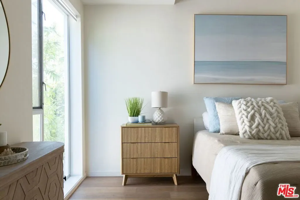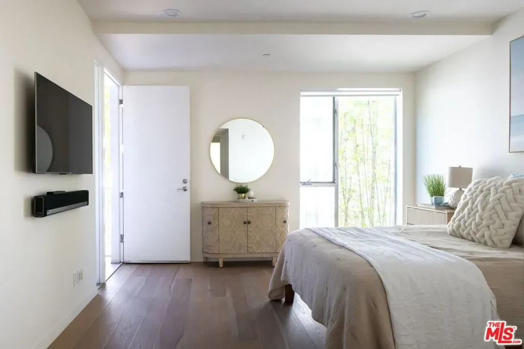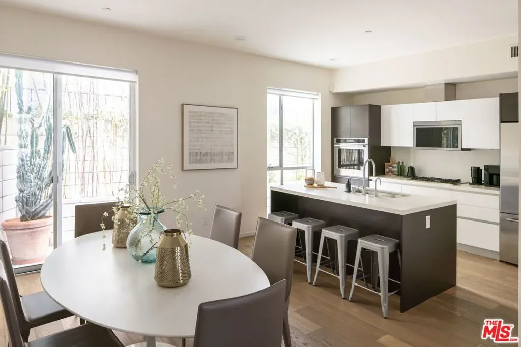 Set within an award-winning six-residence enclave by acclaimed architect Lorcan O’Herlihy, recipient of the 2025 AIA Lifetime Achievement Award. This sophisticated two-story, 2-bedroom, 2.5-bath residence with a dedicated OFFICE NOOK offers the privacy and feel of a single-family home. Bathed in natural light, the open-concept living space is defined by soaring 9-foot ceilings and floor-to-ceiling windows. Elevated finishes include wide-plank wood flooring, custom European Wenge cabinetry, Caesarstone surfaces, and a suite of premium appliances by KitchenAid, Fisher & Paykel, and Miele. An integrated surround sound system adds a refined touch for the discerning audiophile. Just off the kitchen, a private deeded patio provides an inviting setting for morning coffee or tea. Upstairs, two generously scaled bedroom suites each feature their own contemporary bath and expansive walk-in closet, with the primary suite further distinguished by a private balcony. A thoughtfully positioned office/reading nook separates the bedrooms, offering both functionality and privacy. Additional amenities include deeded parking for 2 cars in a secure, gated subterranean garage with dedicated bike storage. The property is professionally managed and benefits from regular maintenance, including weekly custodian and gardening services. Ideally situated in the residential Miracle Mile neighborhood, this home is walkable to an array of coffee shops, dining, boutique gyms and grocery stores (Lassen’s, Republique, Met Her at a Bar restaurant group, Equinox, and more), as well as, cultural destinations including LACMA and the Petersen Automotive Museum. Just minutes from Beverly Hills, Culver City, Downtown LA, West Hollywood, and Hollywood. The forthcoming Purple Line Metro station at Wilshire and La Brea is slated for completion in Spring 2026.