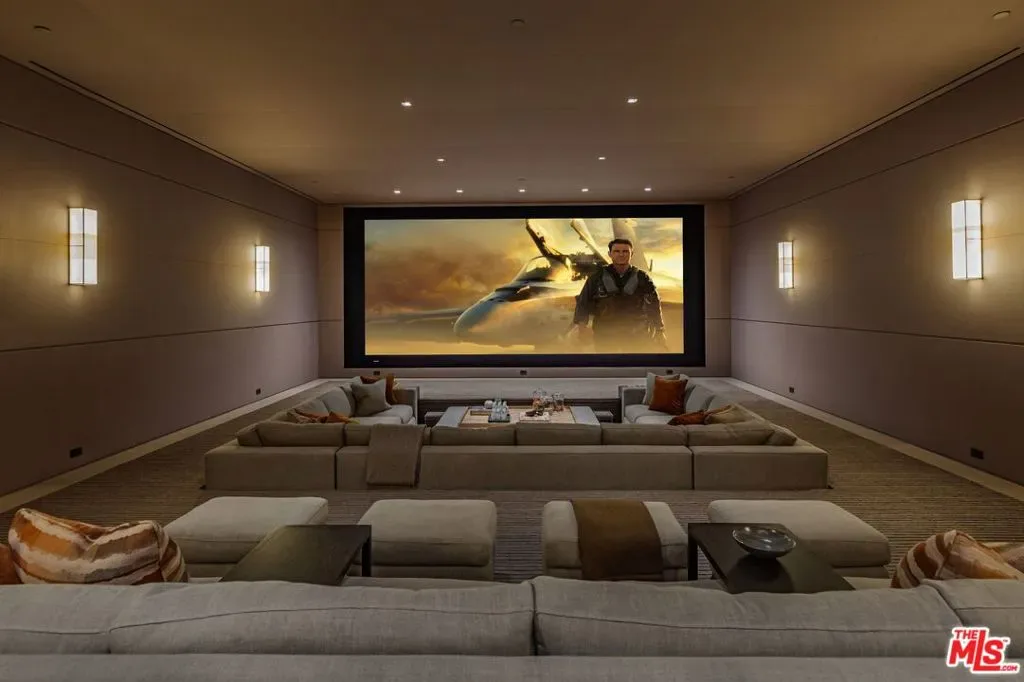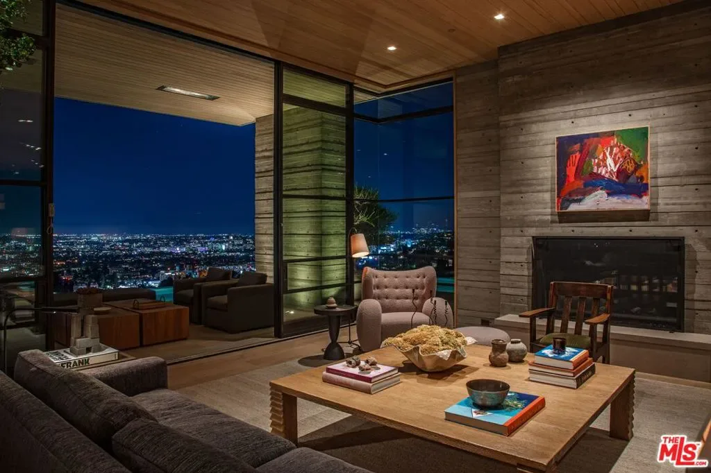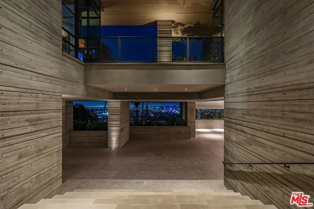 The Hollywood Hills House designed by Scott Mitchell Studio is a monumental and versatile modern villa rising out of the Hollywood Hills. The layered and terraced house – designed for living and entertaining – embraces views that span L.A.’s cityscape from east to west and out to the Pacific Ocean. This property is set on Los Angeles’s most iconic promontory, formerly owned by Howard Hughes, that extends over one acre with no neighbors on either side and 270 views of the entire city. Set at the 50-yard line of legendary hot spots Chateau Marmont, Tower Bar, and the Hollywood Bowl, the energy of the city can be seen and felt from the estate’s peaceful privacy. Additionally, the property borders state land so no building can be constructed behind it, and it has private access to hiking in the famous Runyon Canyon. The form of the house follows a rigorous commitment to rich, organic materials and light. Grand outdoor decks provide seamless indoor and outdoor living. With expansive volumes over three floors, the tranquil and rooted hillside haven exudes a sense of balance, repose and a seamless connection to the natural landscape. A secluded driveway inclines to an impressive, cobbled motor court that can accommodate 12 or more cars and is nestled under the house with far-reaching views across the city. From there the villa’s grand and wide staircase begins, following the form of the building, passing a large-scale, vertical water feature to the landscaped north terrace and walkway, where native plantings and open fires frame the principal steel window and door entry system. On entering, to the east is a luxurious study and to the west, an open living room with fireplace and views across the city that flows into the dining room and on to the kitchen and family room, where floor to ceiling glass sliding doors open seamlessly connecting indoor and outdoor and framing wide urban vistas. On the exterior, wire-brushed narrow Itauba deck boards and an elegant dark stone clad infinity pool and hot tub are flanked by a sunken fire pit and seating area. A stand-alone pool bar and lounge is connected by a covered breezeway adjacent to an outdoor seating area. Walkways and terraces continue around the house incorporating native oaks and under-storied plantings that are composed with elements of fire and water. On the upper level, the primary bedroom wing comprises not only the primary bedroom but separate bathrooms and dressing rooms, and a study that can be isolated from the rest of the suite by a discreet pocket door system. On the lower level is a recreational zone with state-of-the-art screening room, billiards room with lounge area, and a bar. These program elements are organized around a gracious distribution foyer which doubles as a secondary point of entry to the house and leads to the motor court, which can be converted into a conditioned, modern ballroom. The house was built over a 10-year period, and new codes have been created since its construction, preventing a home of this type ever being built again in the Hollywood Hills. The house is constructed with $30 million of solid poured-in-place board-formed concrete with three feet thick concrete walls, and over 100 caissons that go 100 feet deep. The hard cost of the construction is $3,500 a square foot not including the land. The project engaged JRC Group, Inc., arguably the best builder in the city. The house includes a multi-million-dollar Jada steel door package, custom millwork, and audio/visual.