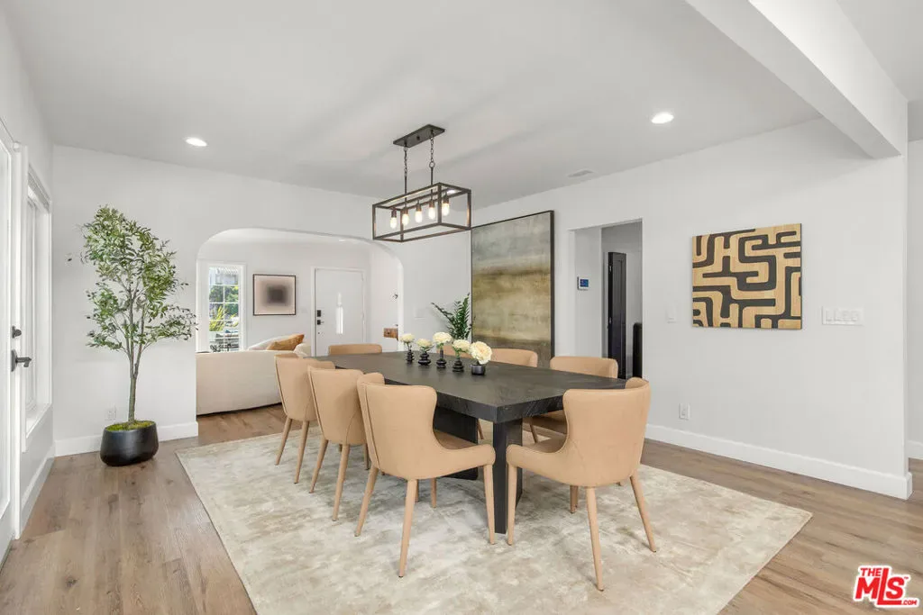 Step into a piece of Los Angeles history at 821 S Cloverdale Ave. This beautifully remodeled 1920s Tudor-style home captures the eye with its signature roofline and lush curb appeal before opening into a masterpiece of contemporary design. This updated estate offers approximately 2,344 total square feet of living space, with a 6,690-square-foot lot and 3+ parking spaces in the heart of the historic Miracle Mile HPOZ. The exciting news is this home is 3 blocks from the new D Line La Brea/Wilshire Station opening May 8th. Luxury flooring leads you through a light-filled open floor plan, anchored by a gourmet kitchen featuring a massive island designed for grand-scale entertaining. The primary suite serves as a serene retreat, while three additional bedrooms provide versatile space for a growing family or a creative studio. The property’s “X-factor” is the detached, permitted studio ADU, a sleek, modern space that offers endless possibilities for rental income or a private home office. With high-end upgrades including copper plumbing, a newer roof, and foundation bolting, this home offers total peace of mind in the heart of the city. Enjoy quiet evenings by the backyard in one of the city’s most walkable and vibrant neighborhoods.