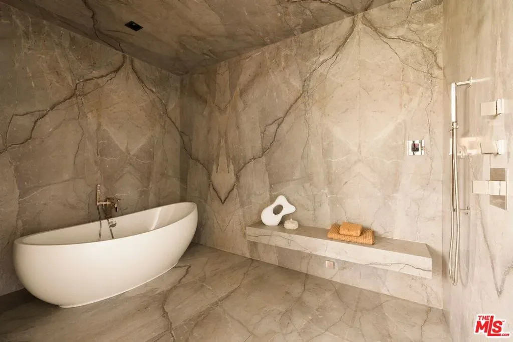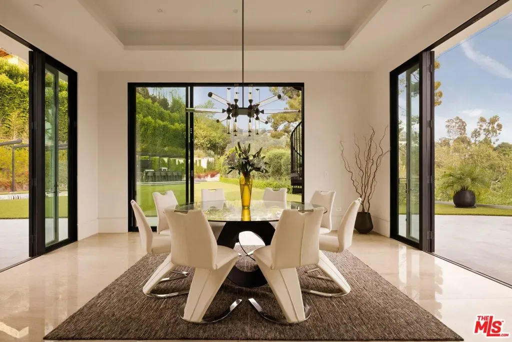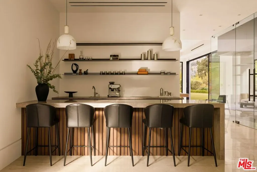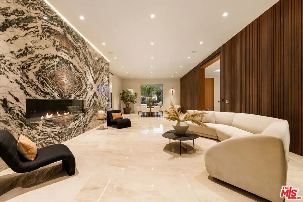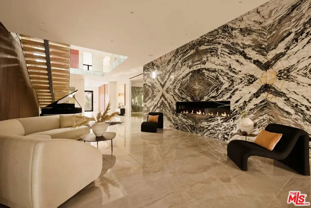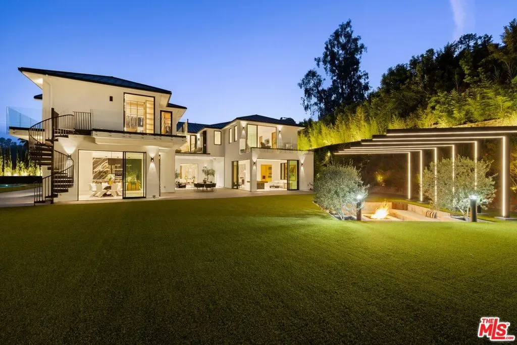 Commanding a private 2.5-acre setting within Crestwood Hills, this newly constructed estate is defined by its scale, architectural clarity, and uncompromising sense of privacy. Concealed behind gates and its own guard house, the property offers a level of seclusion rarely found in Brentwood. A striking double-height arrival sets the tone, where floating staircases, gallery-like volumes, and meticulously selected stone and wood finishes create a refined, modern palette. Light moves effortlessly through the interiors, illuminating expansive living spaces anchored by sculptural fireplaces and walls of glass that dissolve the boundary between indoors and out. The residence is designed with the intention of balancing grand entertaining with quiet retreat. Formal and informal living areas unfold seamlessly, complemented by a private office, a cinema-quality media room, and dining spaces that feel both intimate and architectural. At its center, a statement kitchen pairs bold materiality with precision, featuring Miele appliances and a substantial island designed for both function and presence. Nine en-suite bedrooms are thoughtfully distributed, culminating in a primary suite of significant scale, offering dual baths, expansive dressing rooms, and a private lounge environment. The grounds are equally considered with layered landscaping, open lawns, and curated outdoor spaces that frame a pool and sport court, creating a resort-like setting without sacrificing discretion. A separate 2-bedroom guest house oasis sits at the bottom of the property. A multiple-car garage and parking for 15+ vehicles completes the estate, accommodating a collection with ease. A property of rare composition where architecture, privacy, and scale converge in one of Brentwood’s most coveted hillside enclaves.