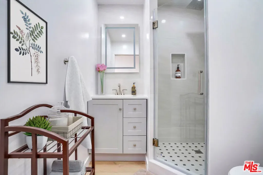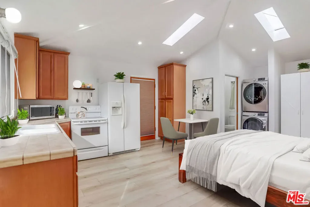 Beautifully remodeled 3-bedroom, 3-bathroom home for lease in Loyola Village. The third bedroom is located separate from the main house at the back of the property in a fully remodeled ADU featuring a vaulted ceiling with skylights and a complete full kitchen (refrigerator, dishwasher, oven/range, stackable washer/dryer). French doors open onto a semi-private courtyard. The main house is bright, spacious, gorgeously maintained open-concept residence with refinished hardwood floors and recessed lighting throughout. The living room, with fireplace and plantation shutters, and a dining space adjoin the contemporary chef’s kitchen featuring quartz countertops, tile backsplash, loads of cabinets, and stainless steel appliances (refrigerator, oven/range, dishwasher, microwave, stackable washer/dryer). The wine fridge fits perfectly beneath the breakfast bar. The expansive primary bedroom features a walk-in closet and remodeled ensuite bath with stall shower and tub. The second bedroom is equally roomy and includes lots of closet space and a door to the back patio. Oversized 2-car garage with a large storage area sits next to the ADU at the end of a long, gated driveway.